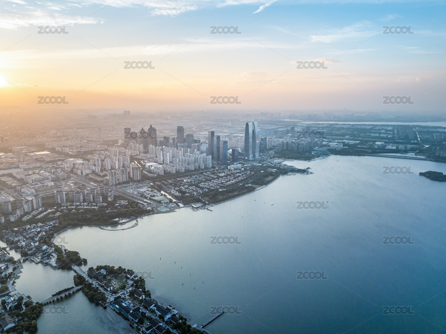苏州园区航拍,苏州夜景,东方之门夜景,夕阳,大裤衩