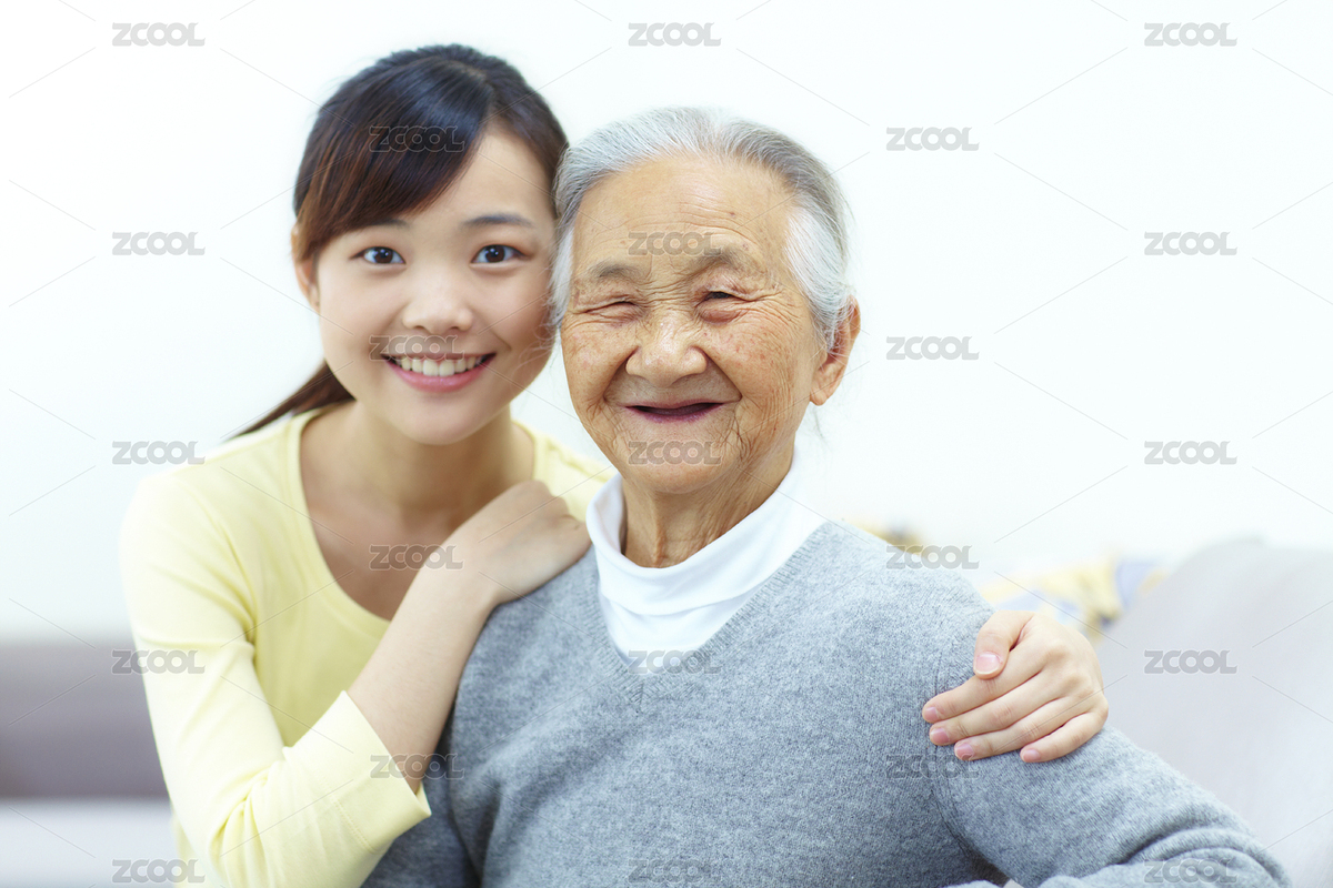 肖像,图片,资深,高级女子,女性,奶奶,孙女,微笑,快乐,看着相机