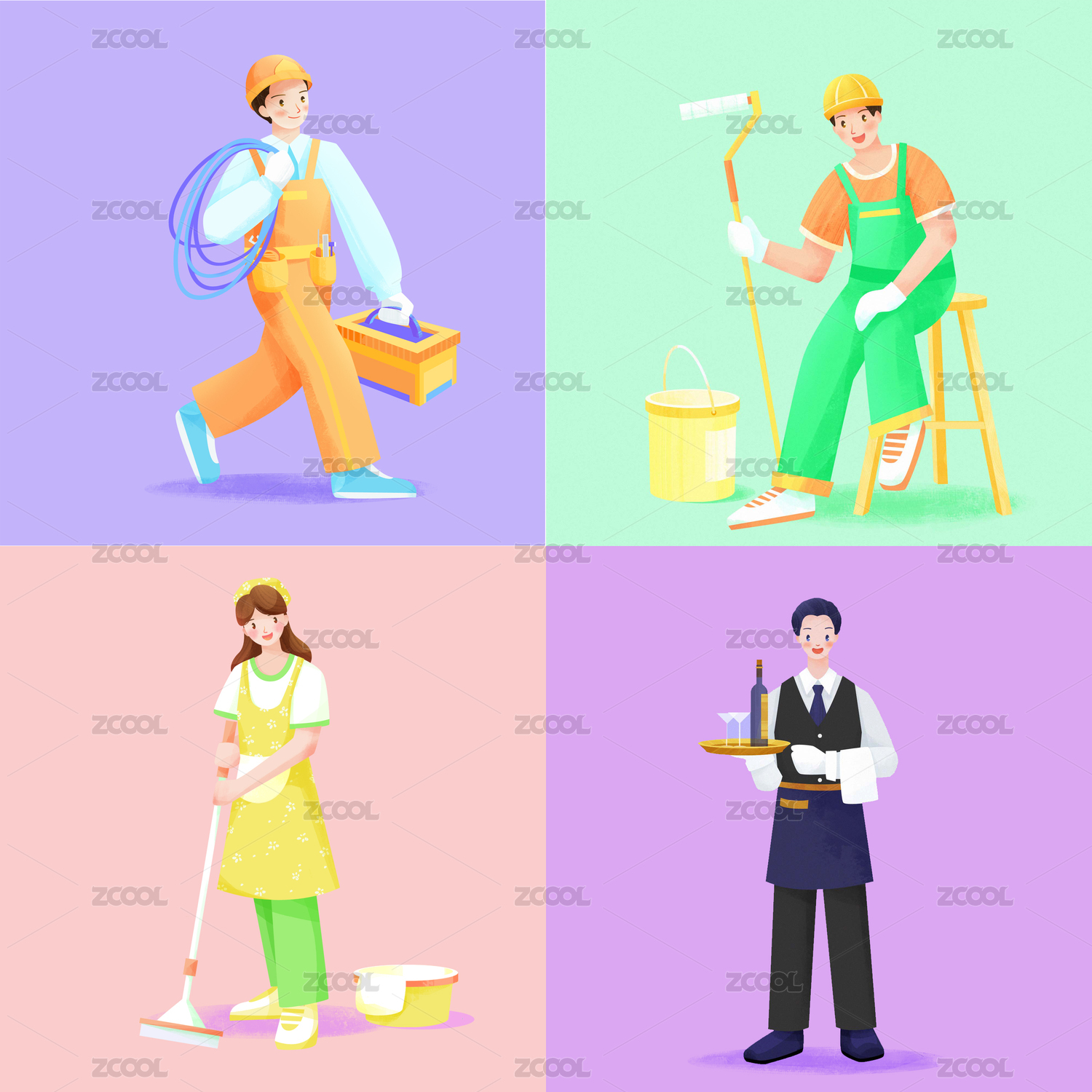 五一劳动节工人工作打扫卫生幸苦整理插画