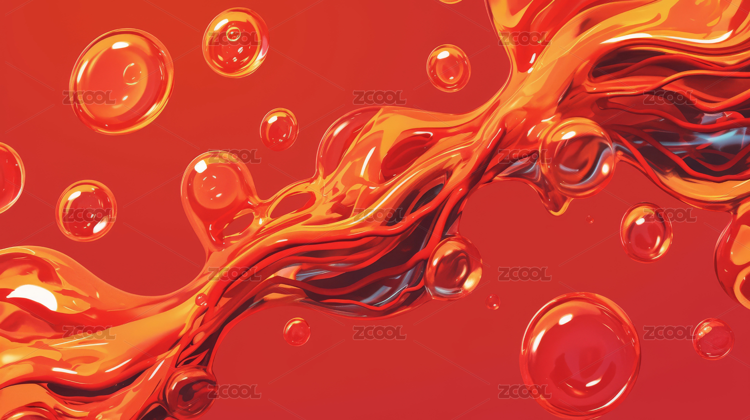 红色液体流动与气泡