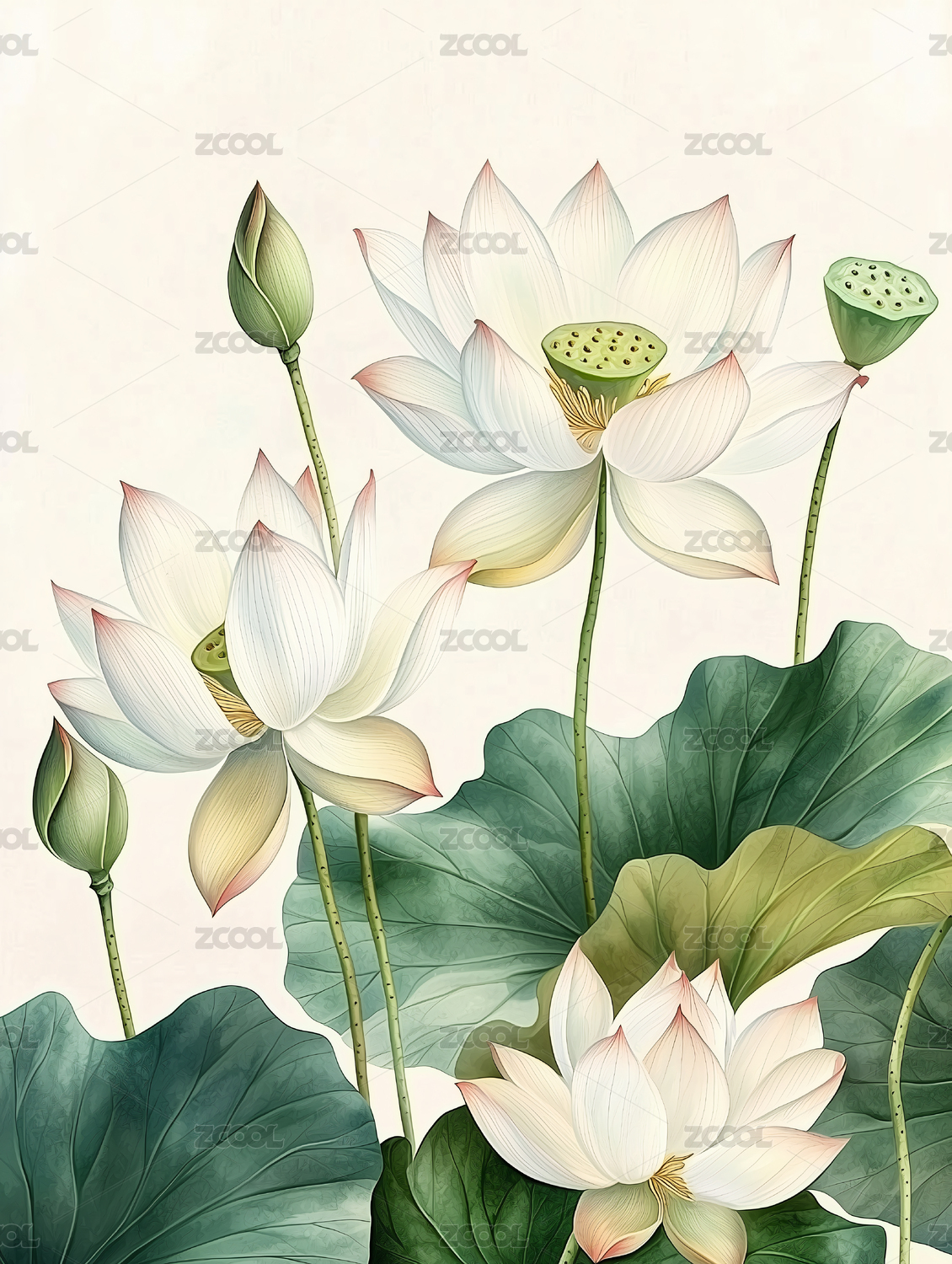 国风荷花莲蓬荷叶插画元素,立夏节气池塘荷