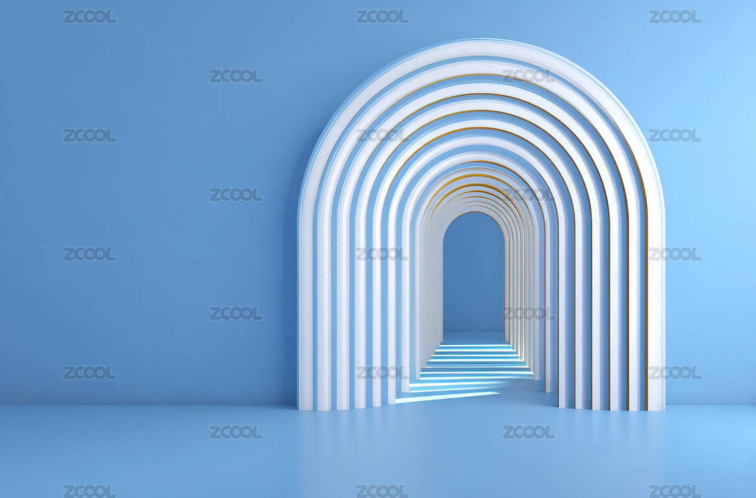 3D渲染科幻延伸蓝色未来科技感空间场景