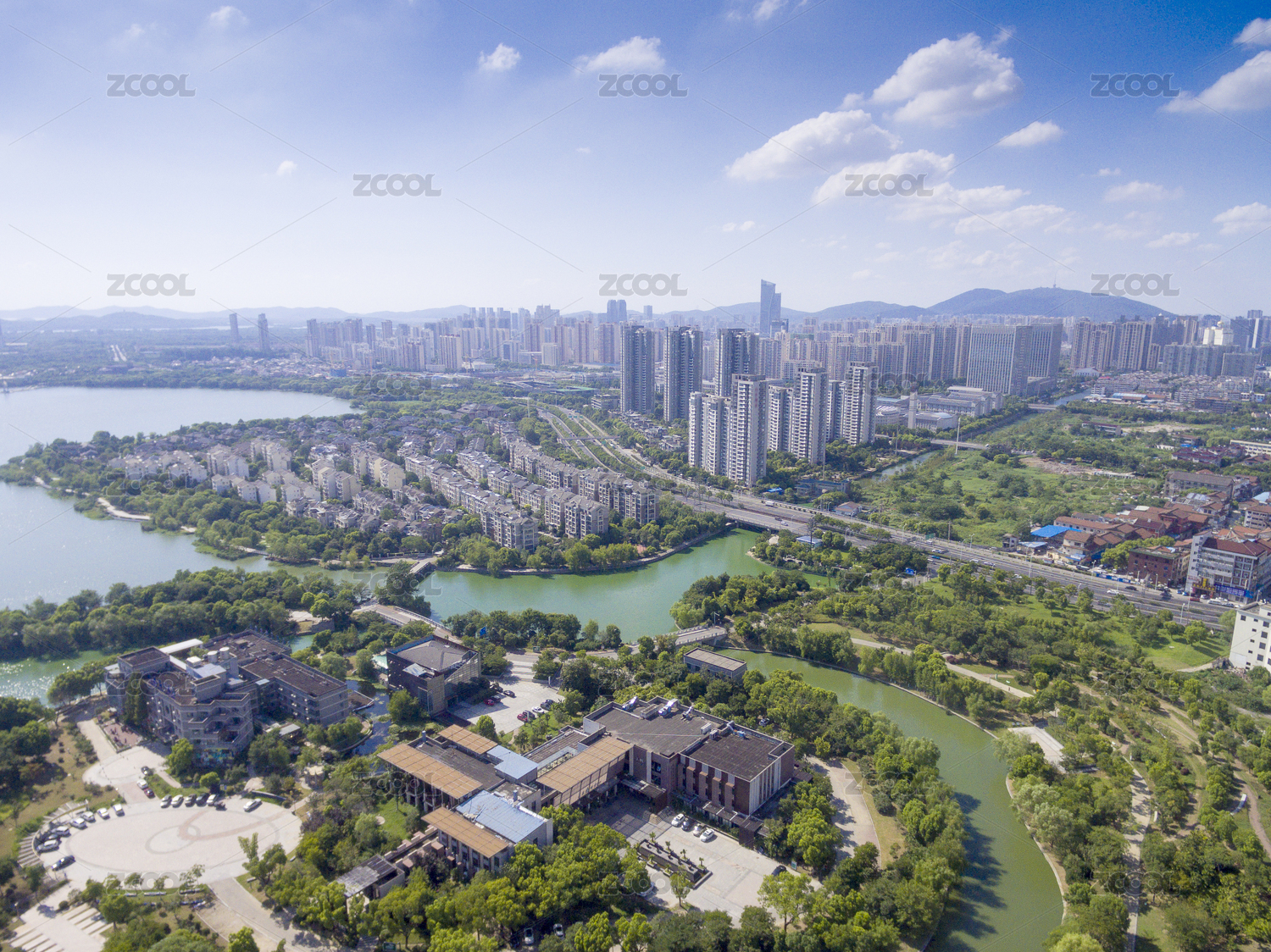 绍兴市柯桥区城市风光航拍,瓜渚湖湖滨公园
