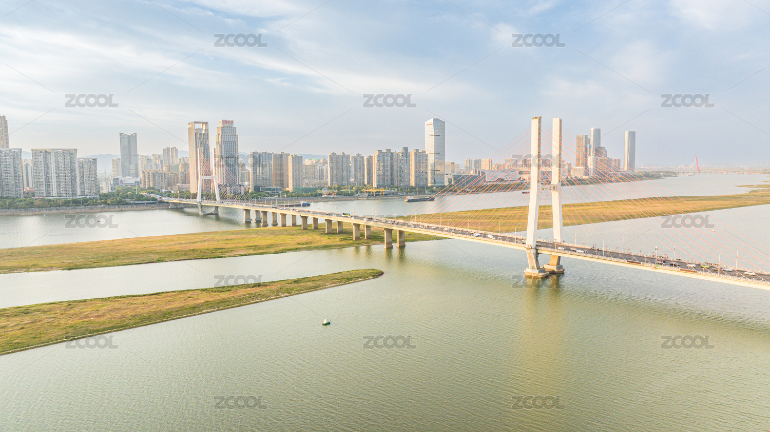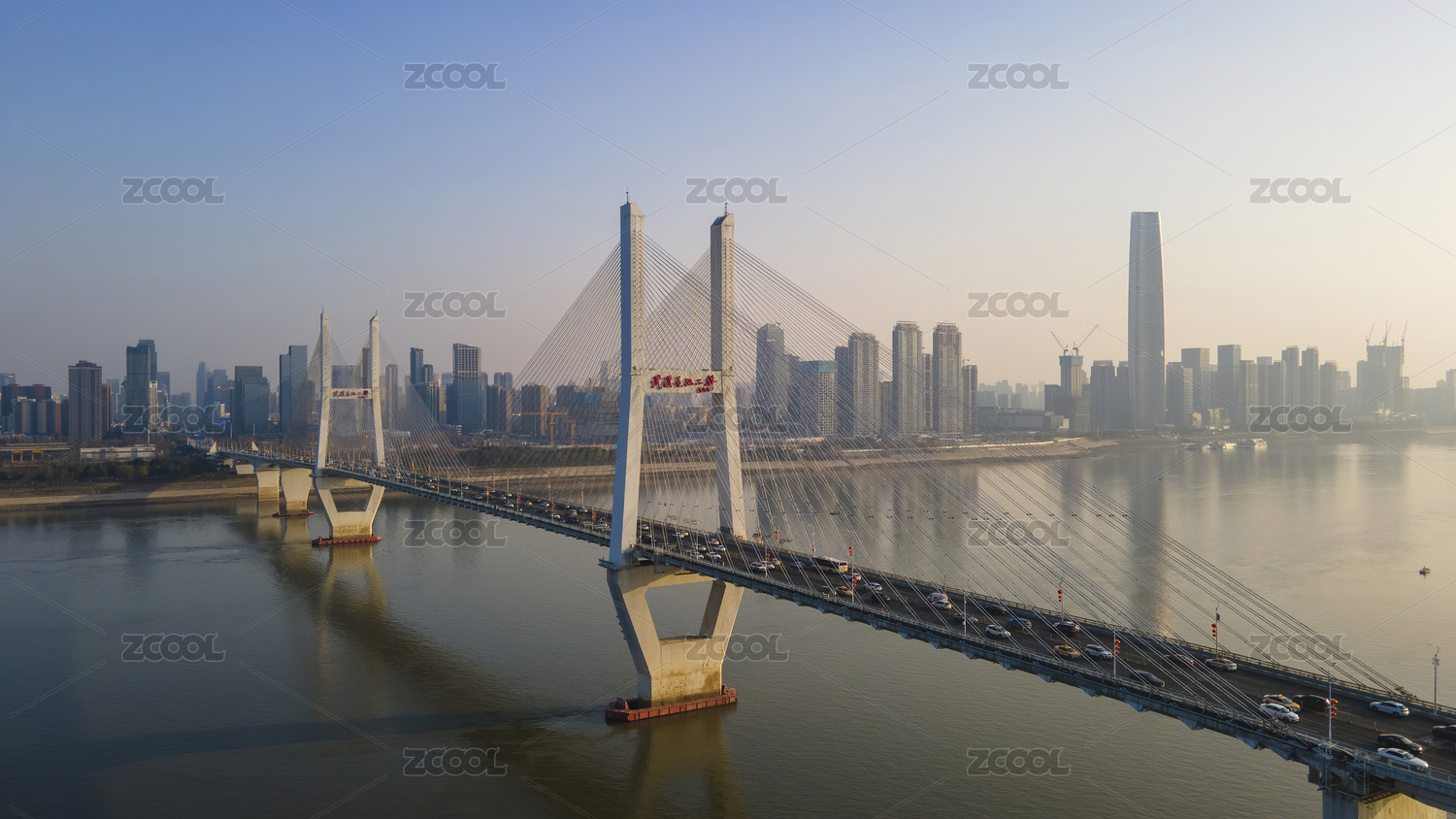 中国湖北武汉长江二桥与二七长江大桥航拍
