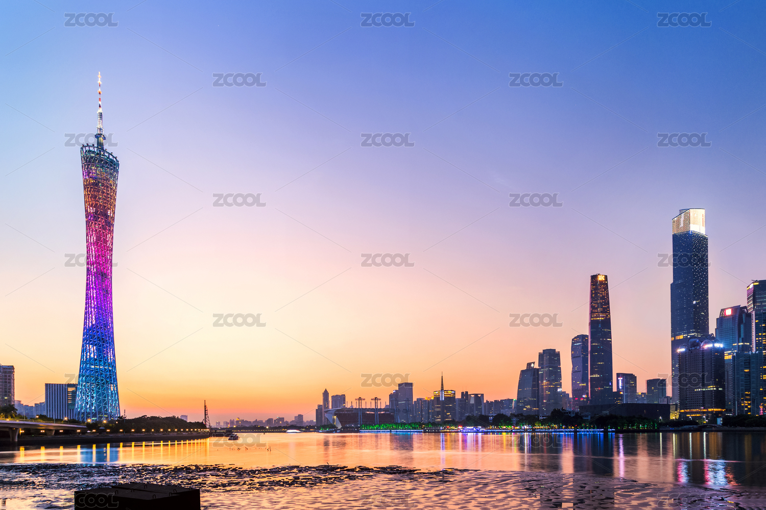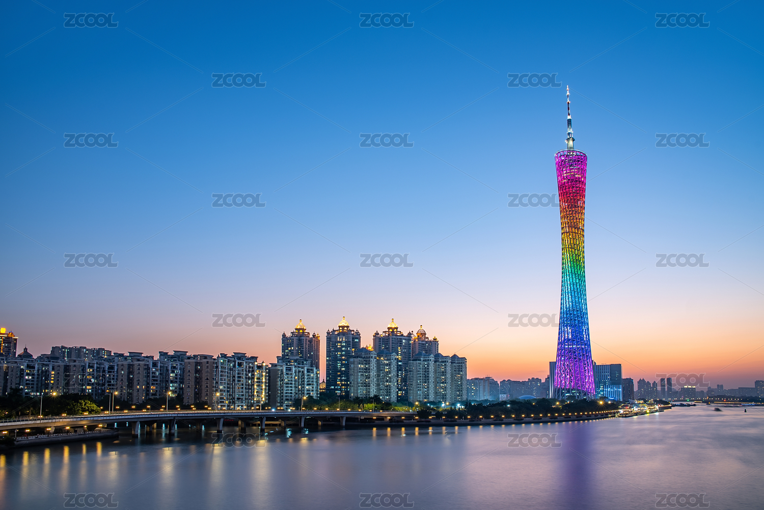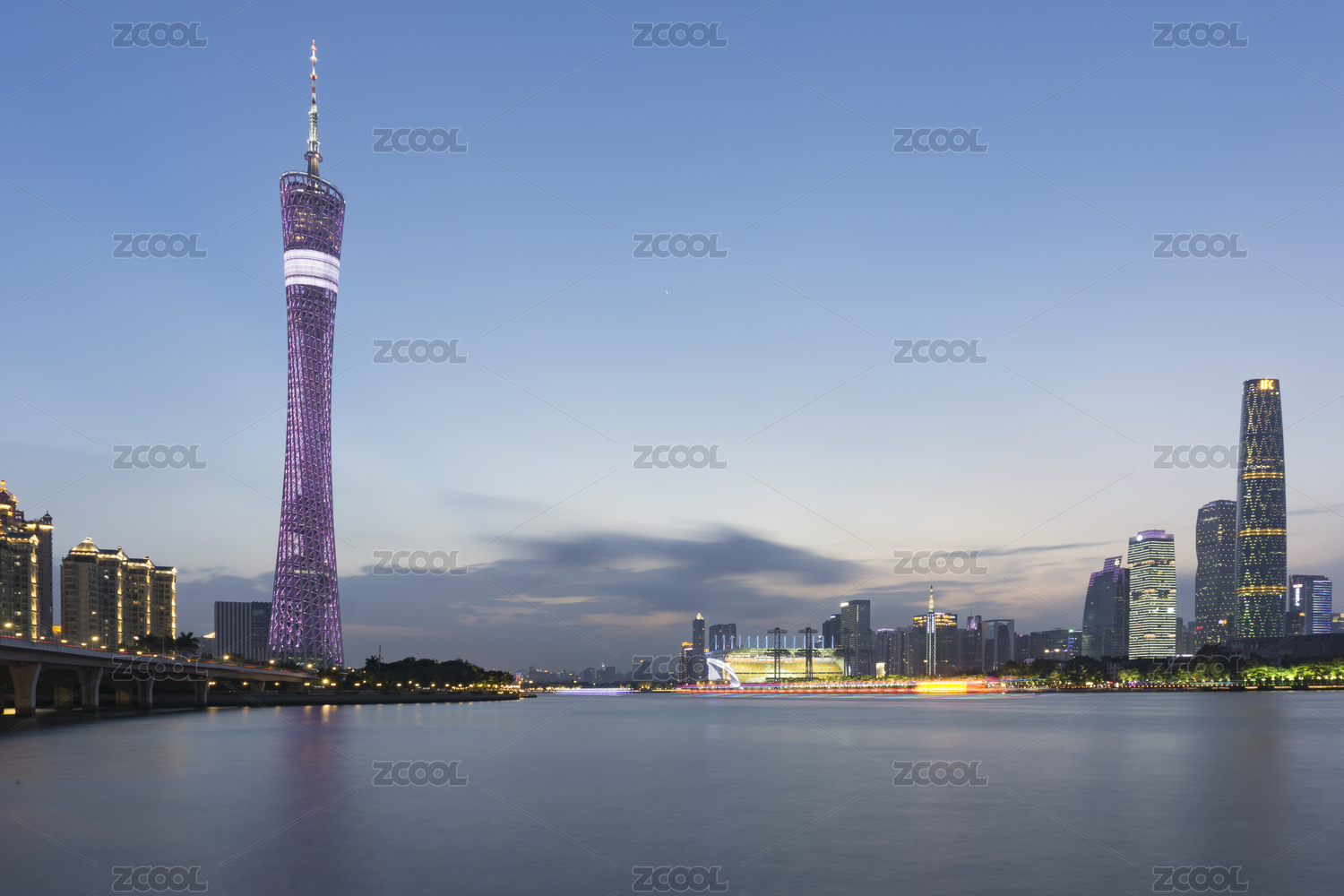 广州高视角城市天际线,广州塔、猎德大桥、珠江新城 城市风光