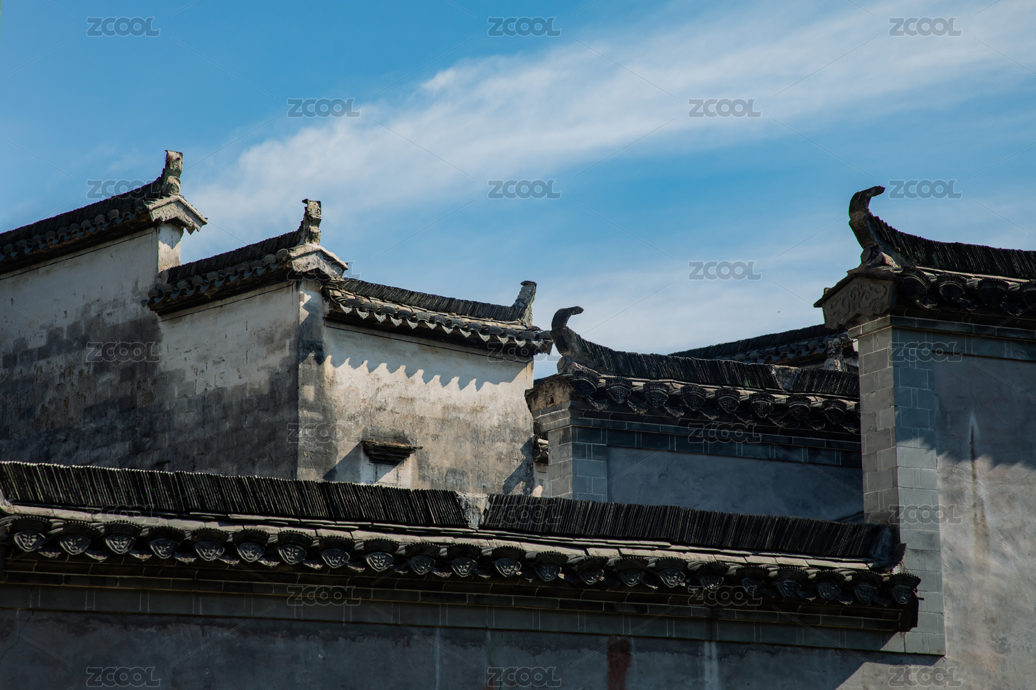 安徽,皖南,徽派,建筑,民居,青砖,黑瓦,白墙,马头墙,蓝天