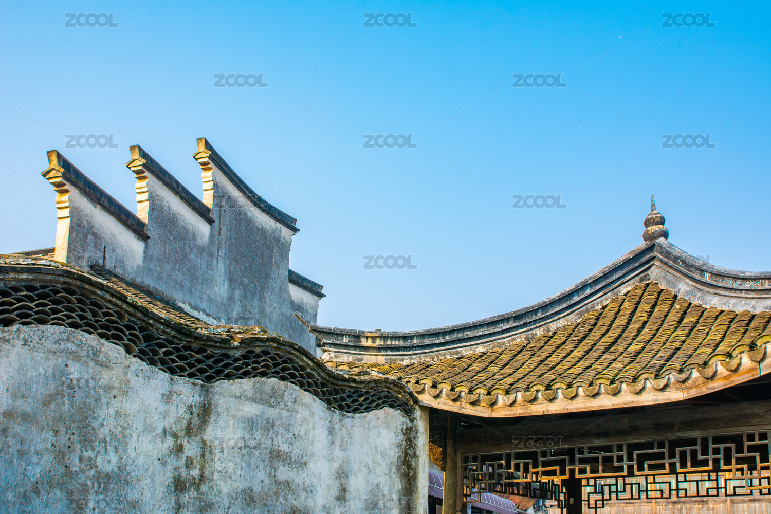 徽派建筑屋顶一角