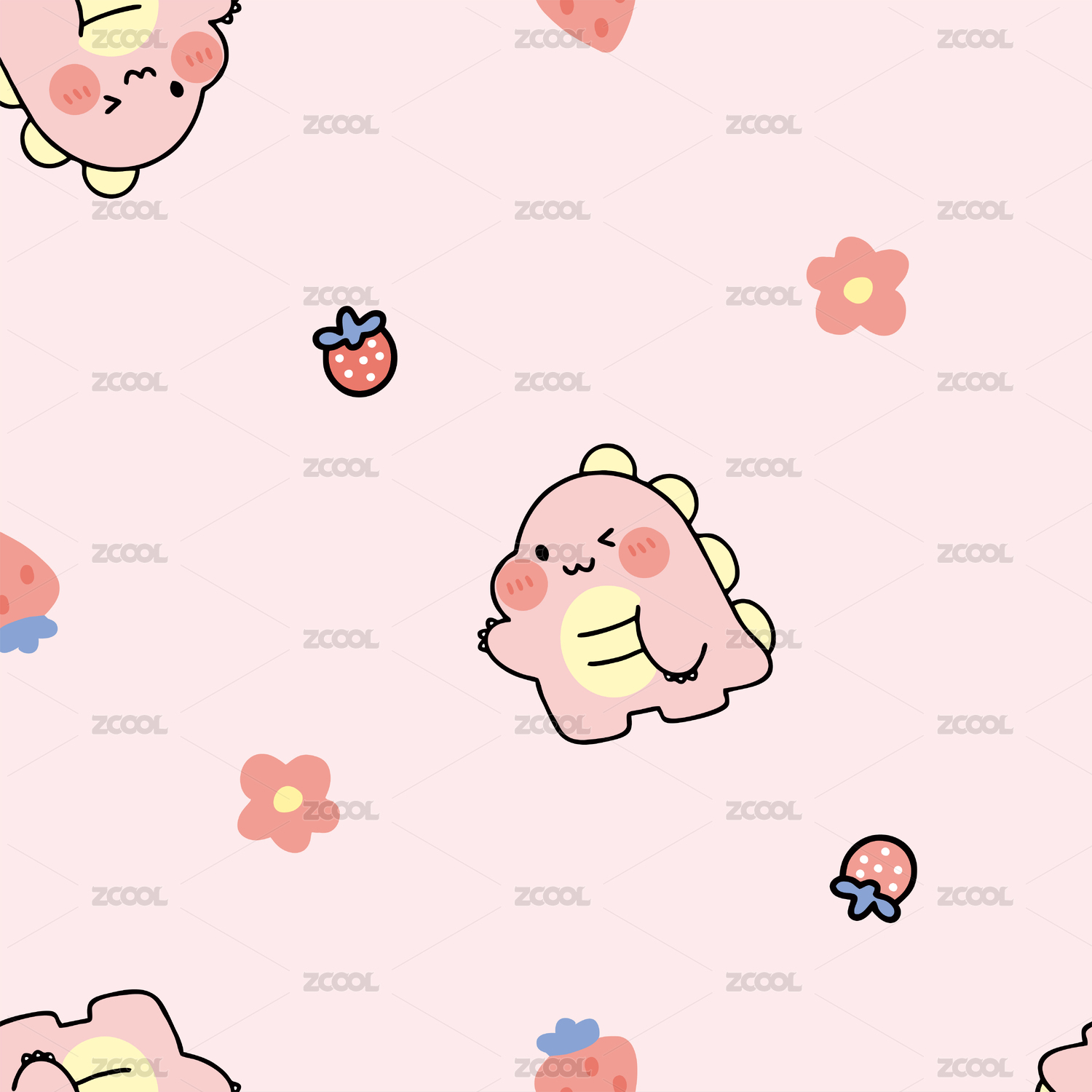 儿童可爱卡通小恐龙草莓无缝四方连续背景