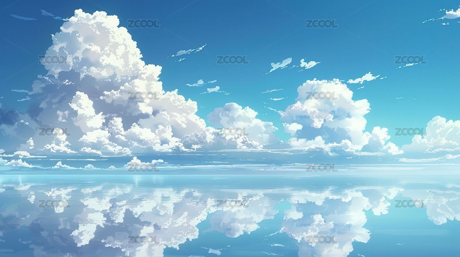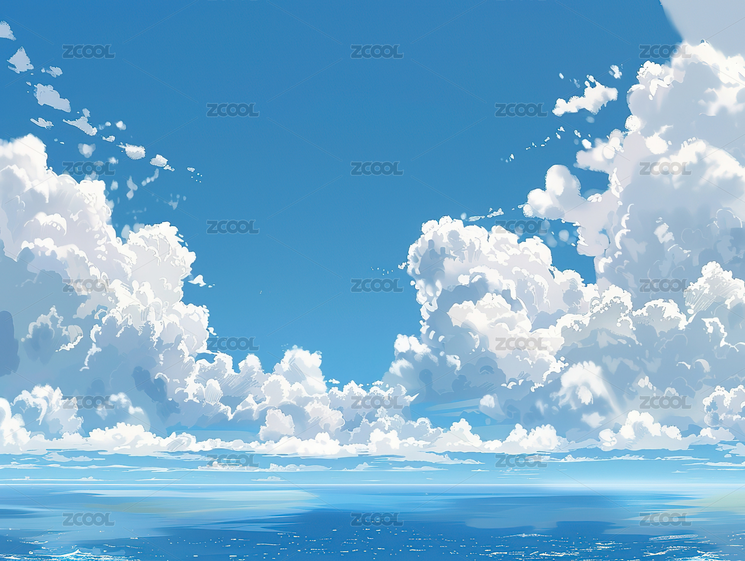 手绘,卡通,蓝色,天空,白云,插画,背景,风景,唯美,晴天