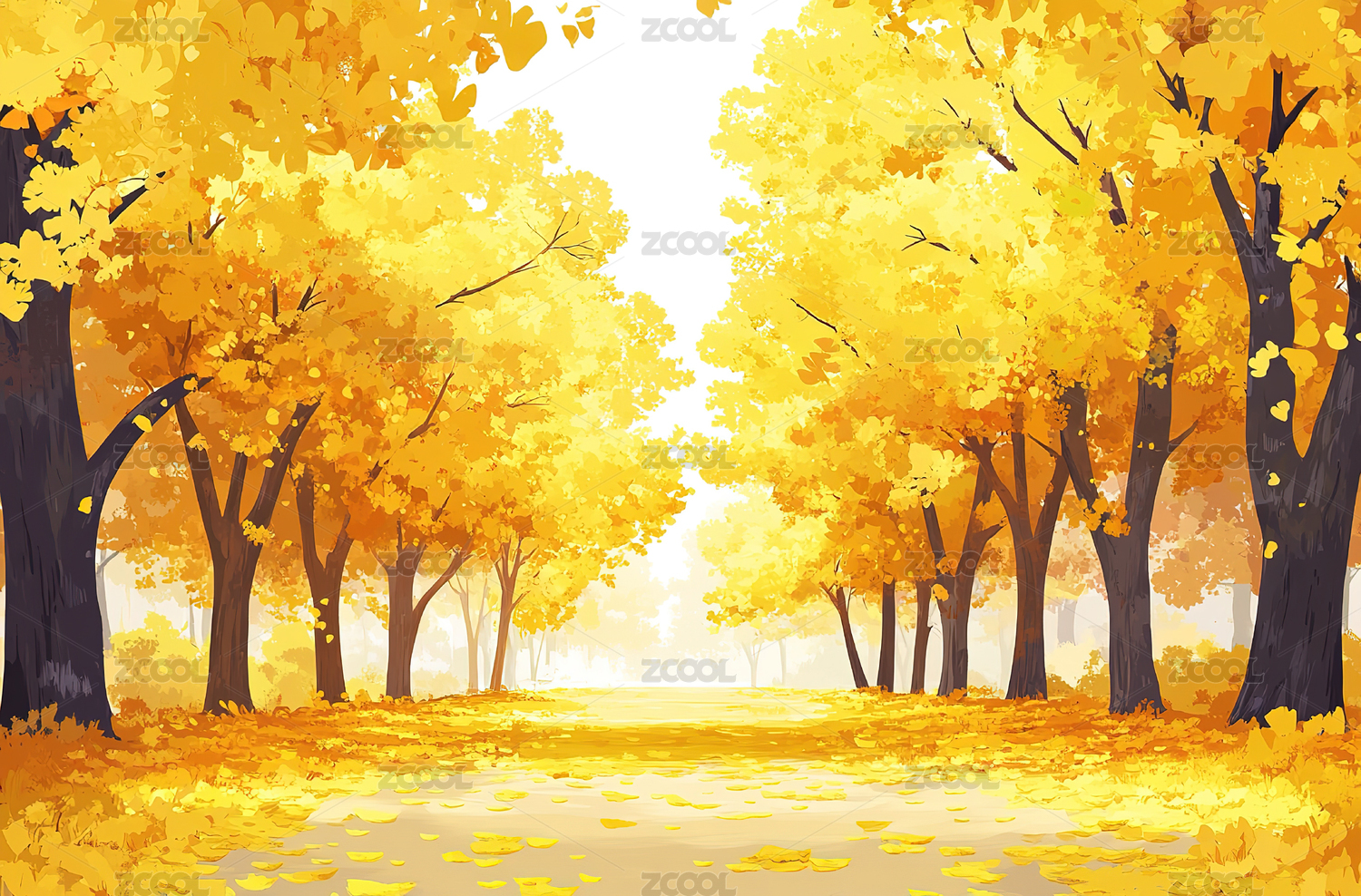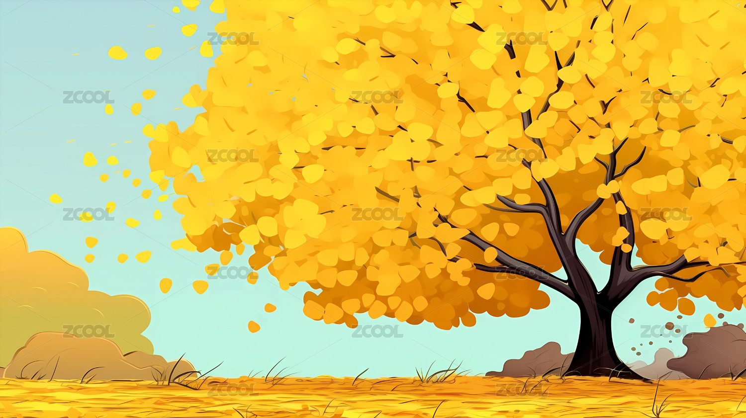手绘,卡通,秋天,风景,季节,落叶,入秋,节气,插画