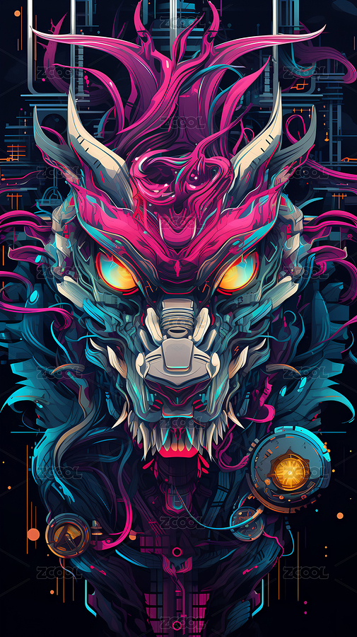 龙,龙王,东海龙王,机械,机甲,赛博朋克,故障风,科幻,概念,涂鸦
