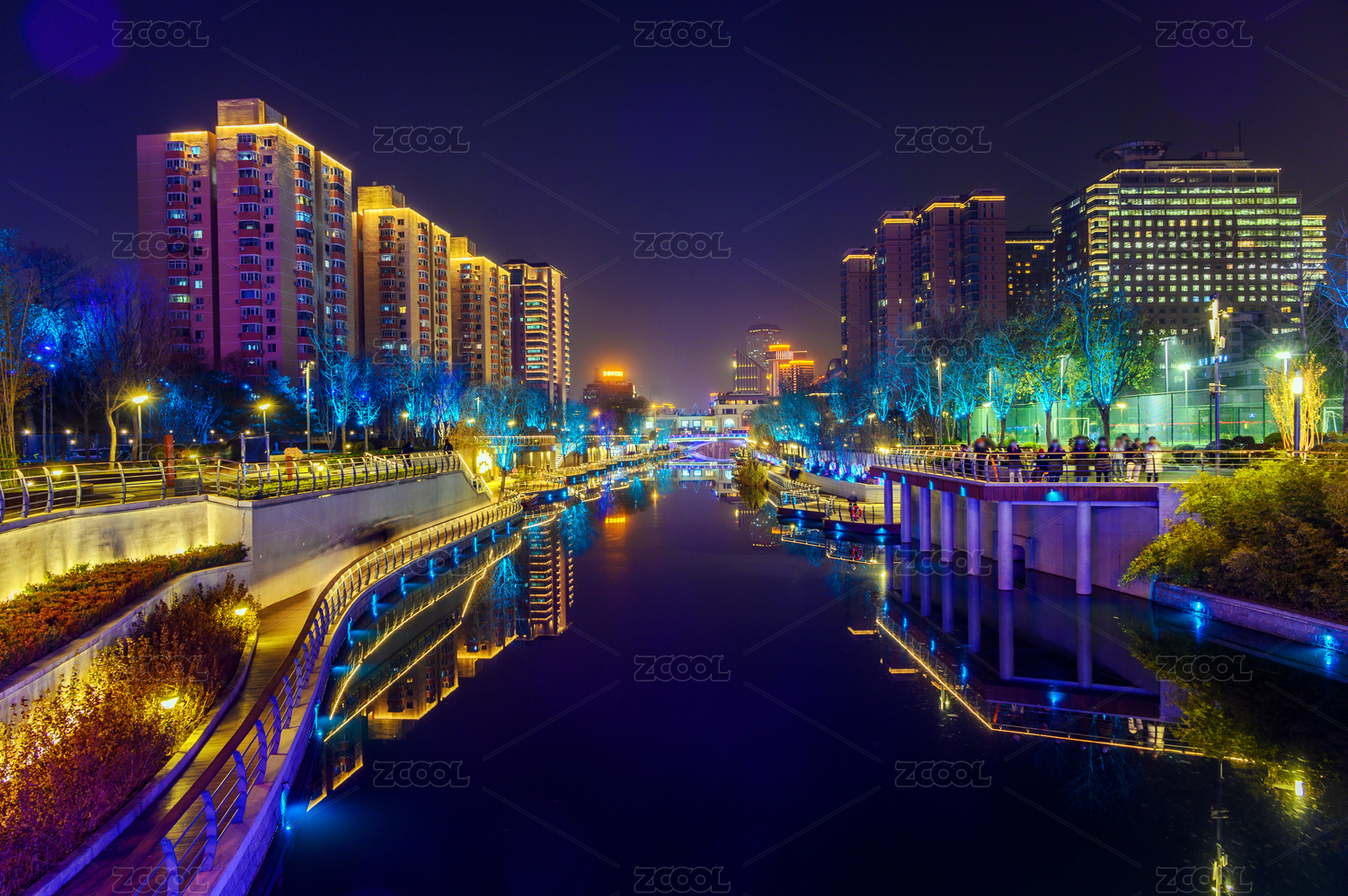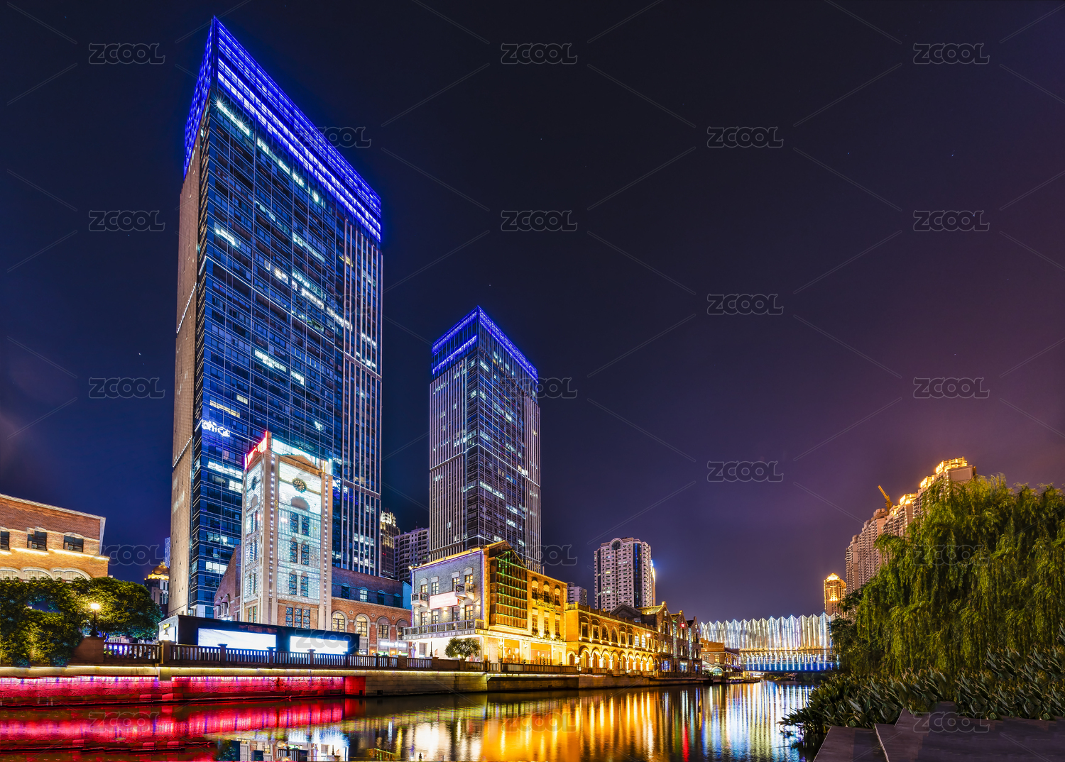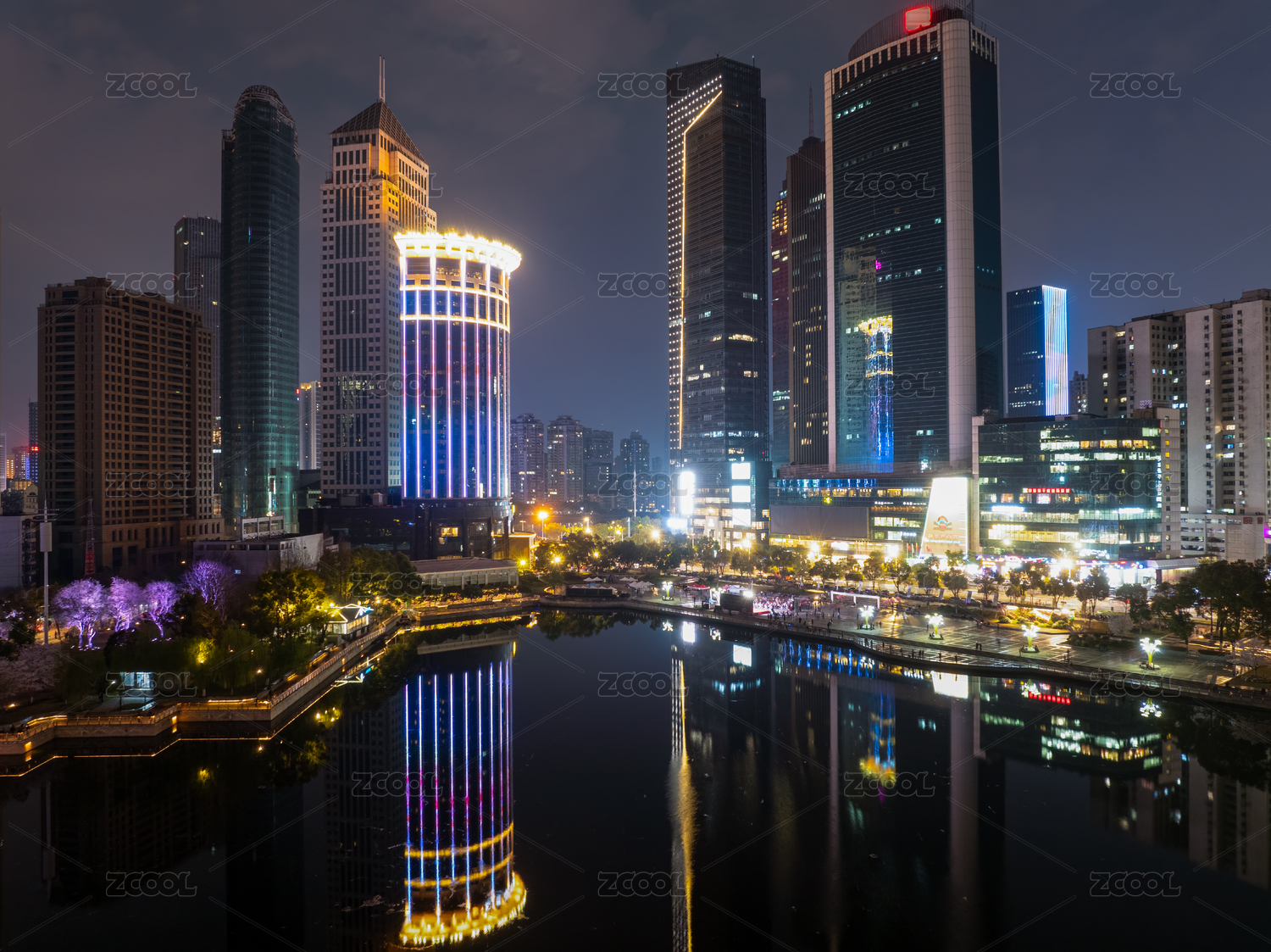 佛山千灯湖公园城市高楼建筑夜景灯光