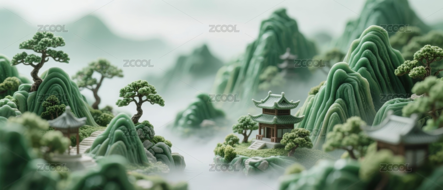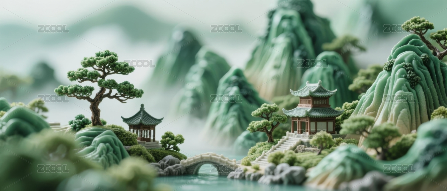 古典建筑亭台楼阁羊毛毡毛绒3D卡通立体画