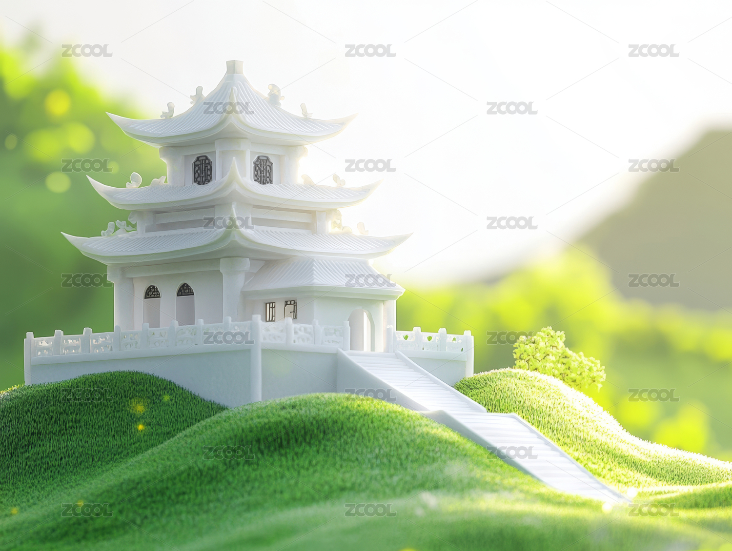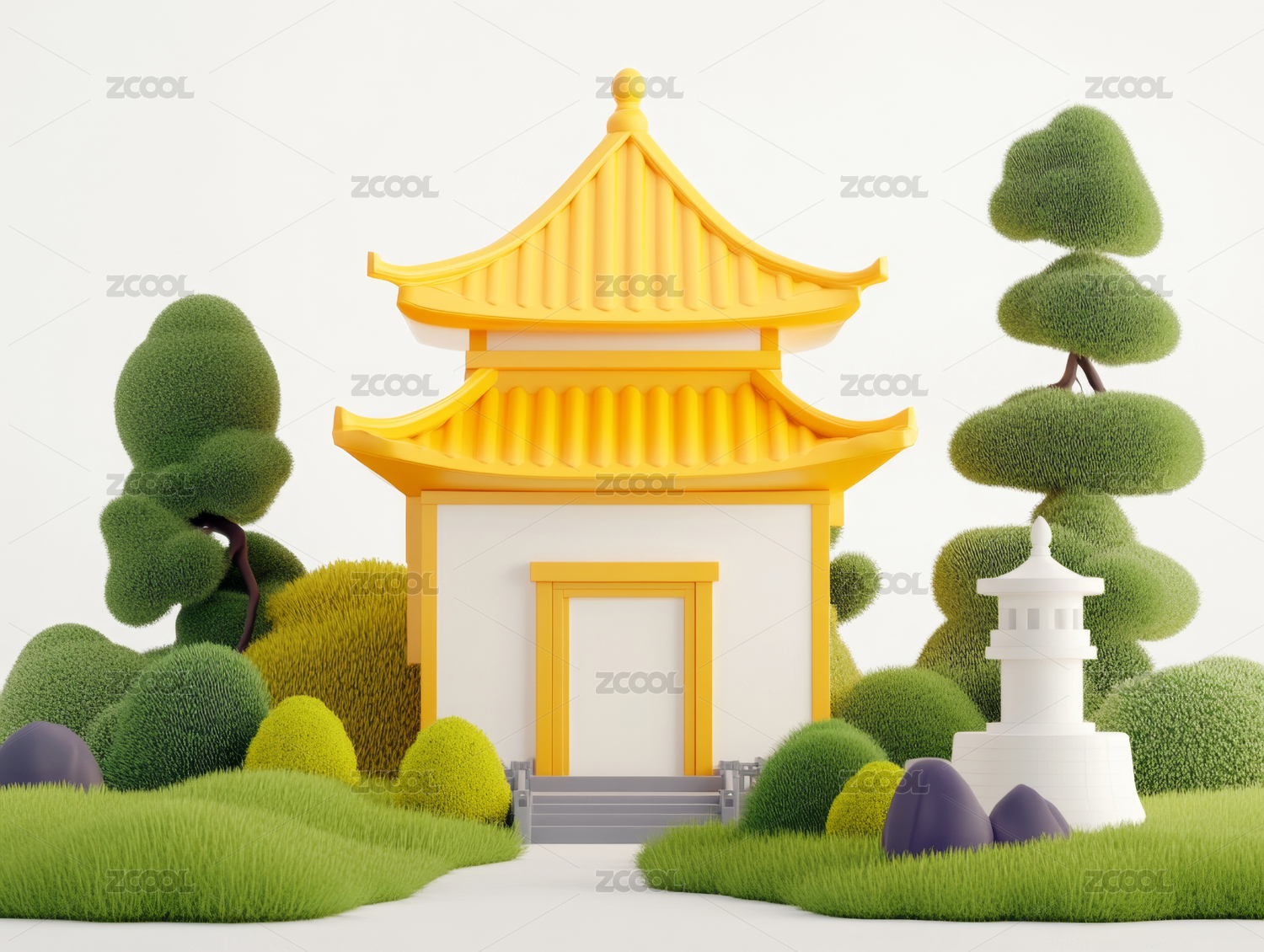 4D软件,图标,背景,模型,旅行,插画,旅游,建筑,黄鹤楼,卡通