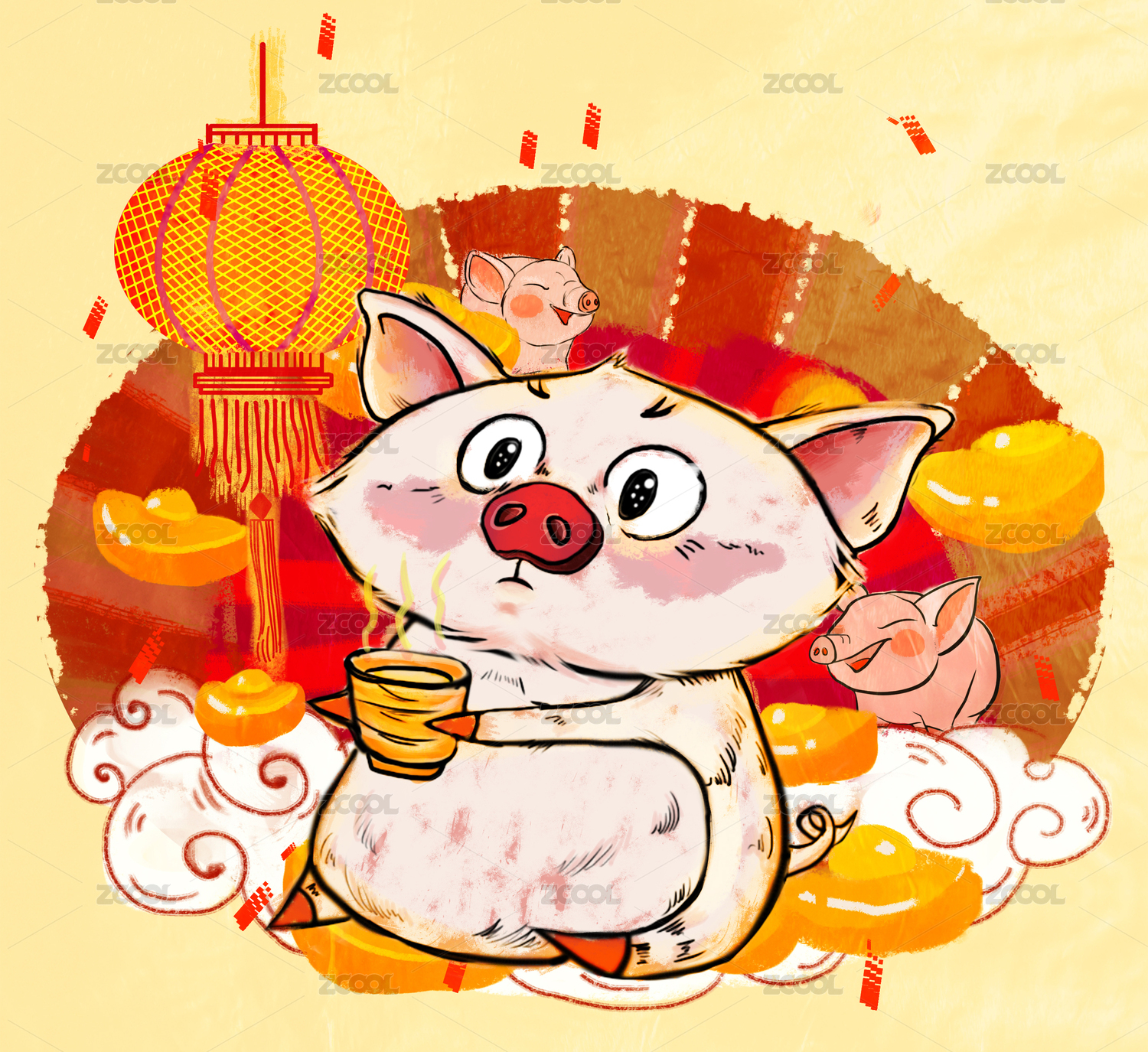 猪年,贺图,新年快乐,诸事顺利,插图,艺术,猪,儿童,插画,新年