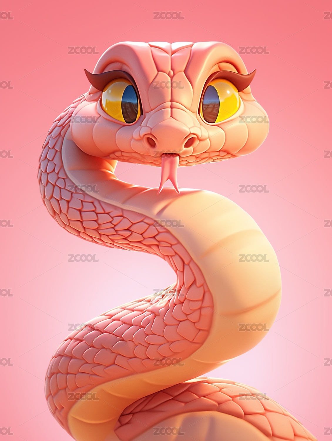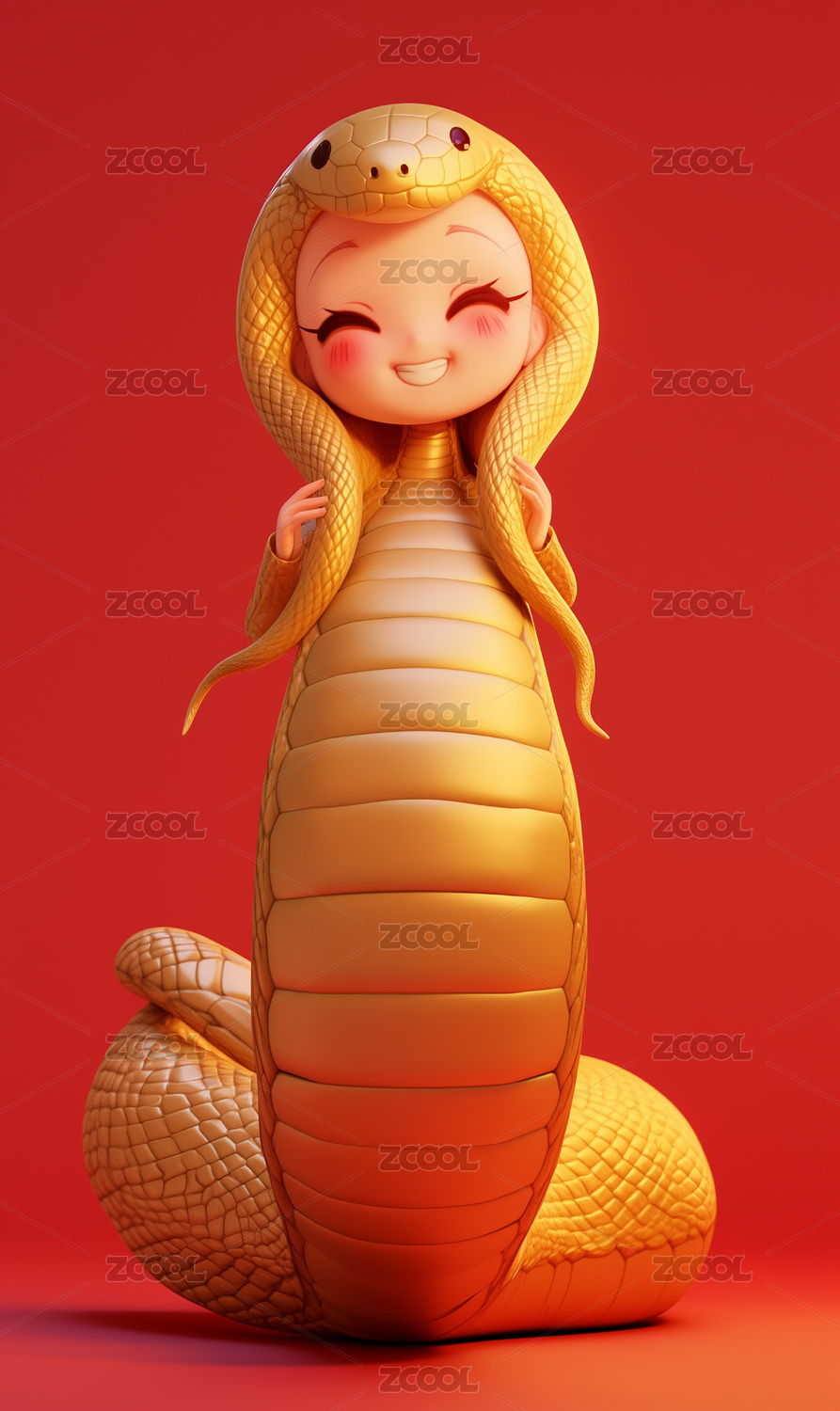 蛇年新年卡通IP可爱动物生肖春节3D插画