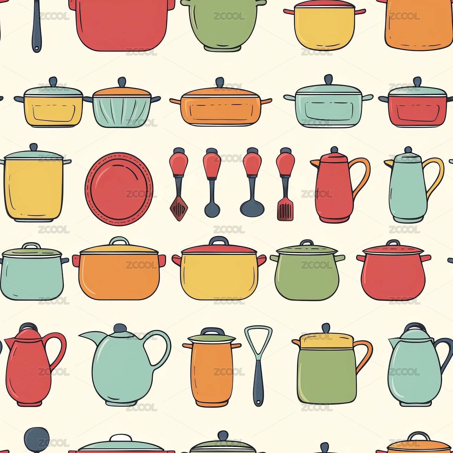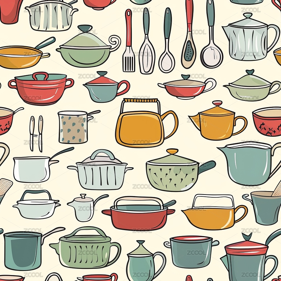 厨具,锅,无缝,图案,印花,色彩,布料,印刷,打印,卡通