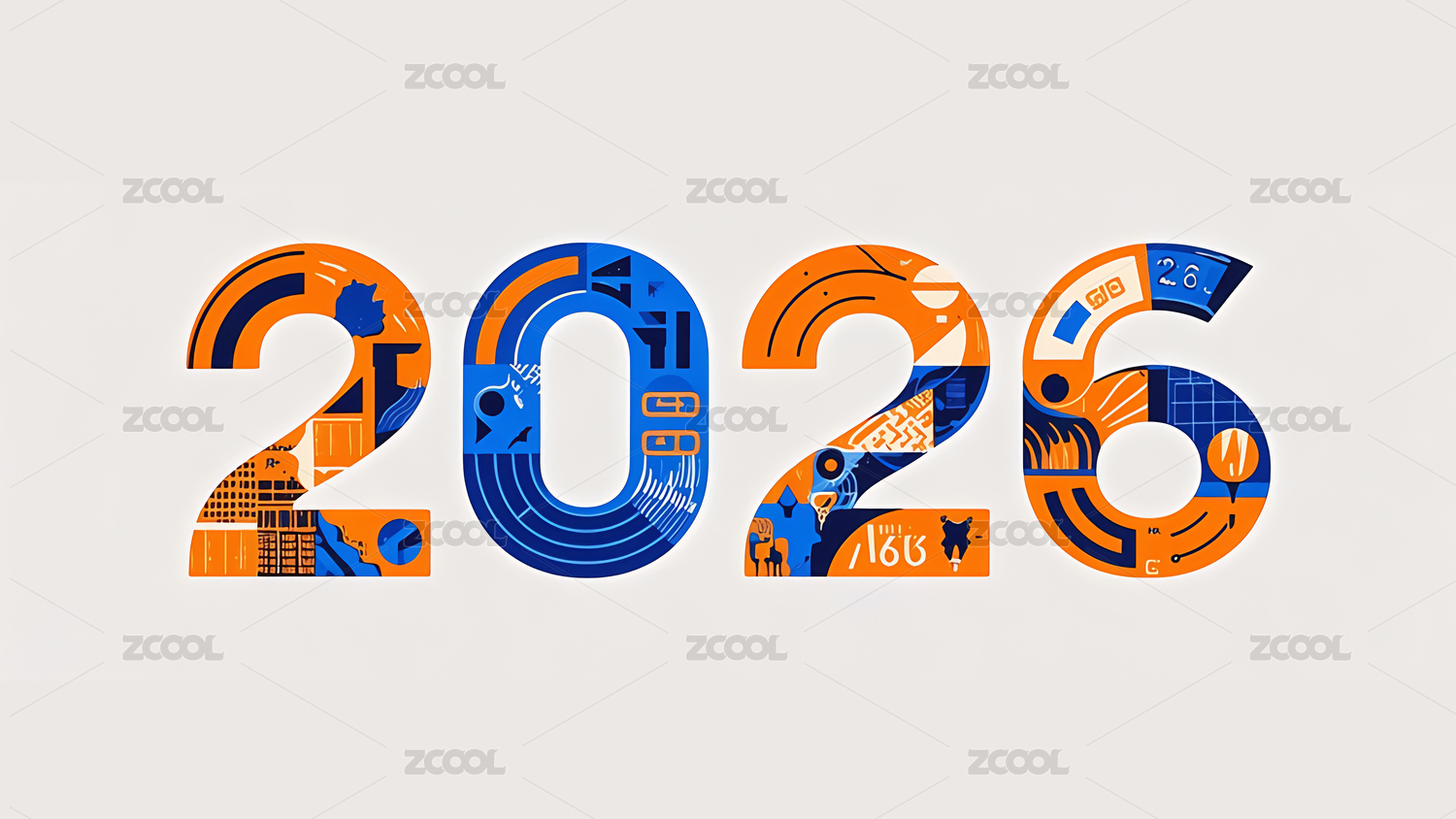 2020年艺术字新年跨年卡通扁平背景矢量插画