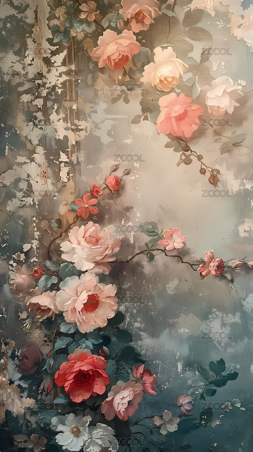 复古玫瑰油画背景