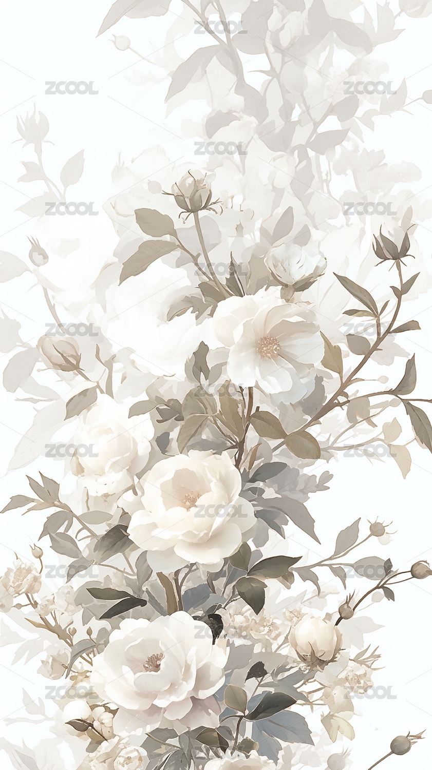 AIGC,插画,背景,壁纸,艺术,自然,花朵,白色,梦幻,唯美