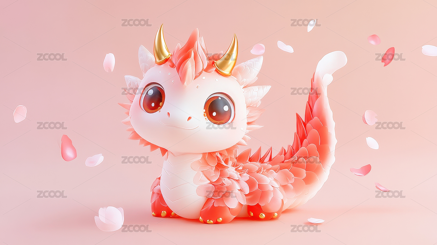 戴着舞狮帽的生肖蛇3D卡通蛇年形象