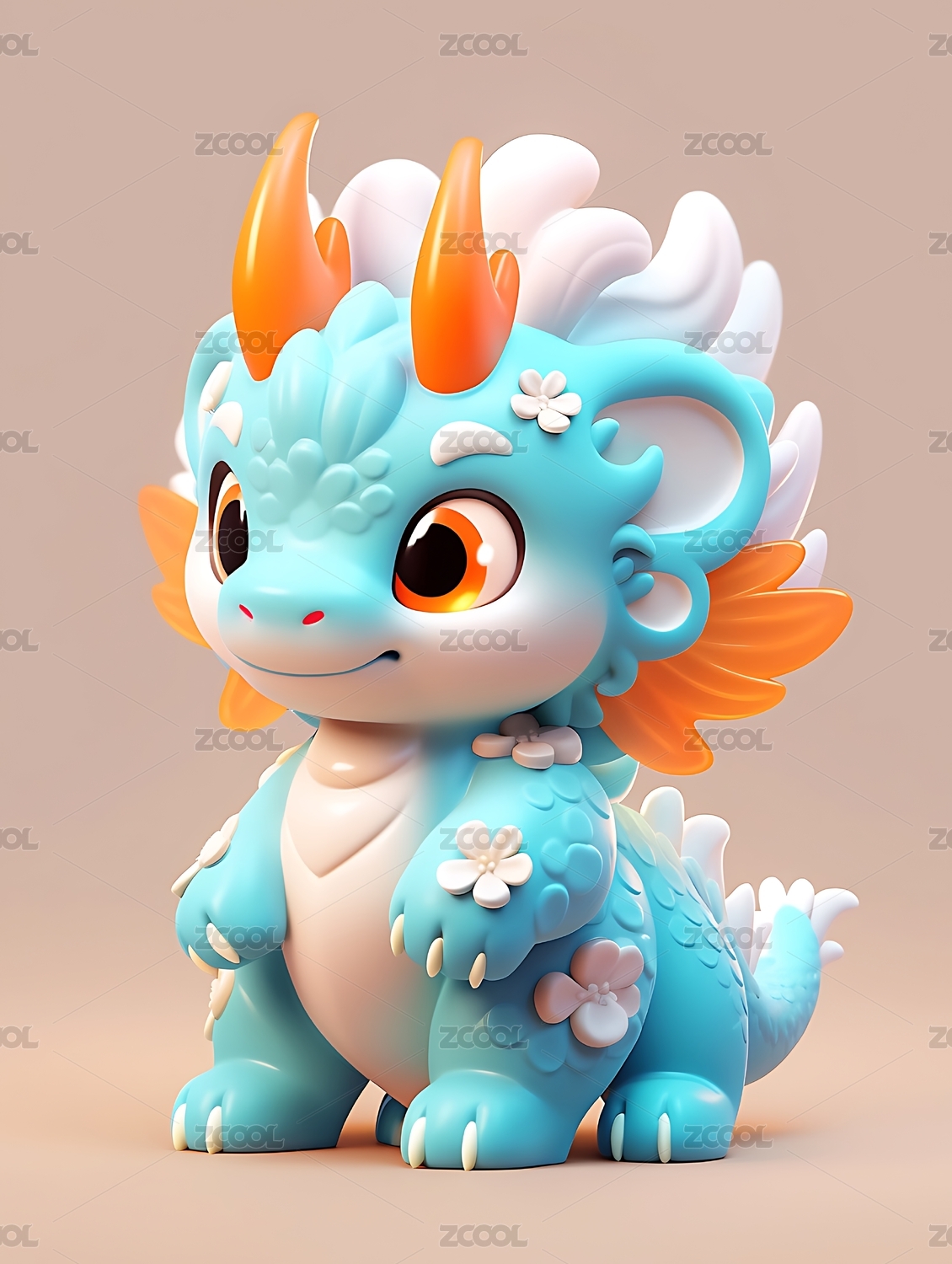 可爱的蓝色小龙卡通形象设计IP设计三视图