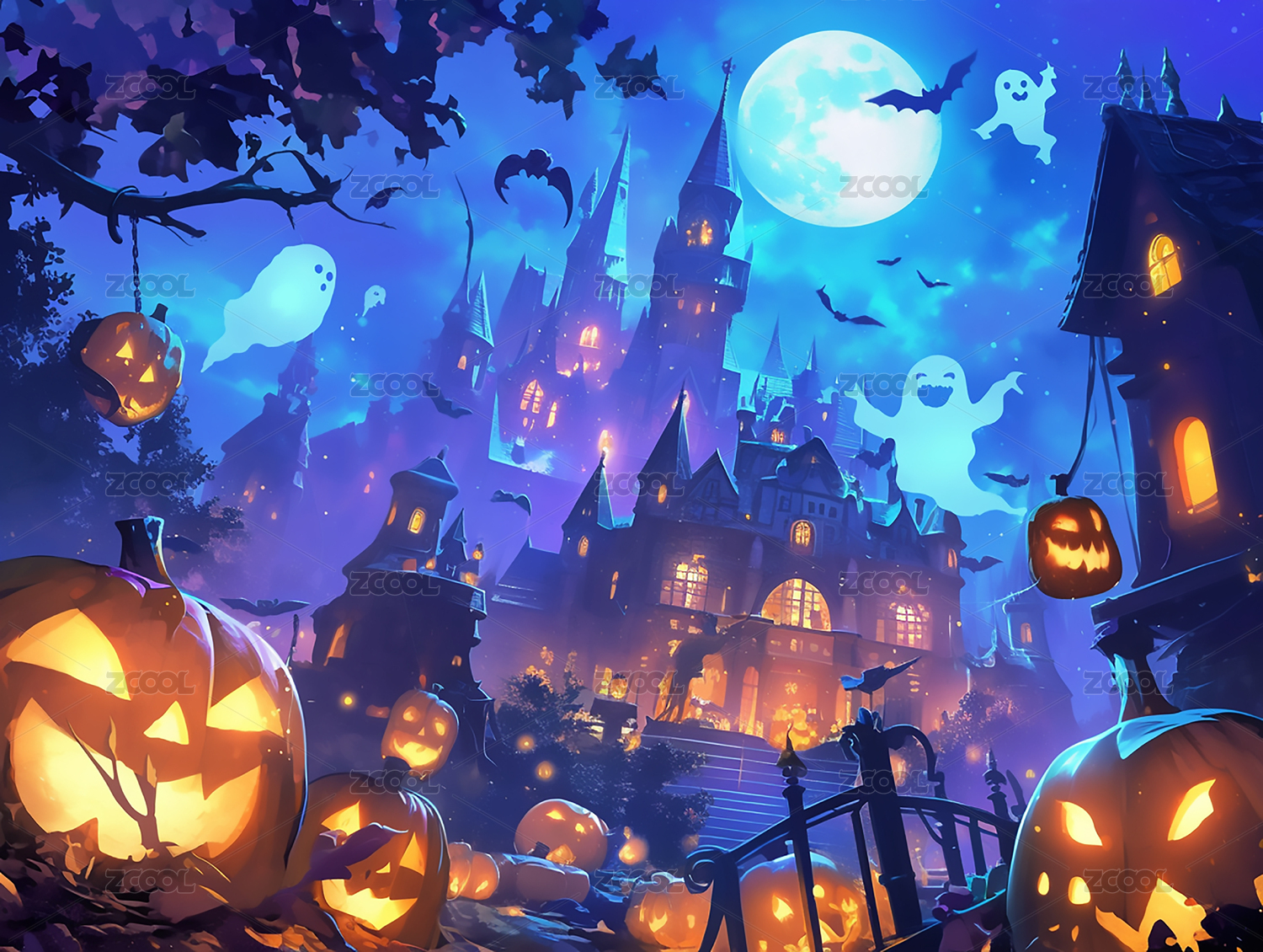 空心南瓜灯,万圣节,万圣节装扮,城堡,蜡烛,蝙蝠,气氛,装扮,节日,庆祝