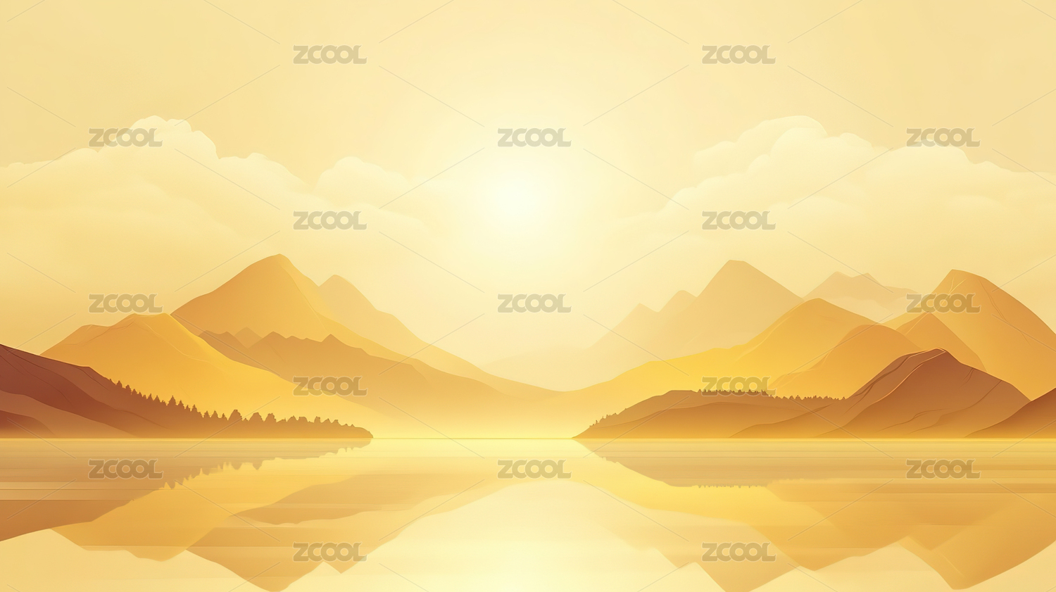 日落和起伏的金色山脉国风山水
