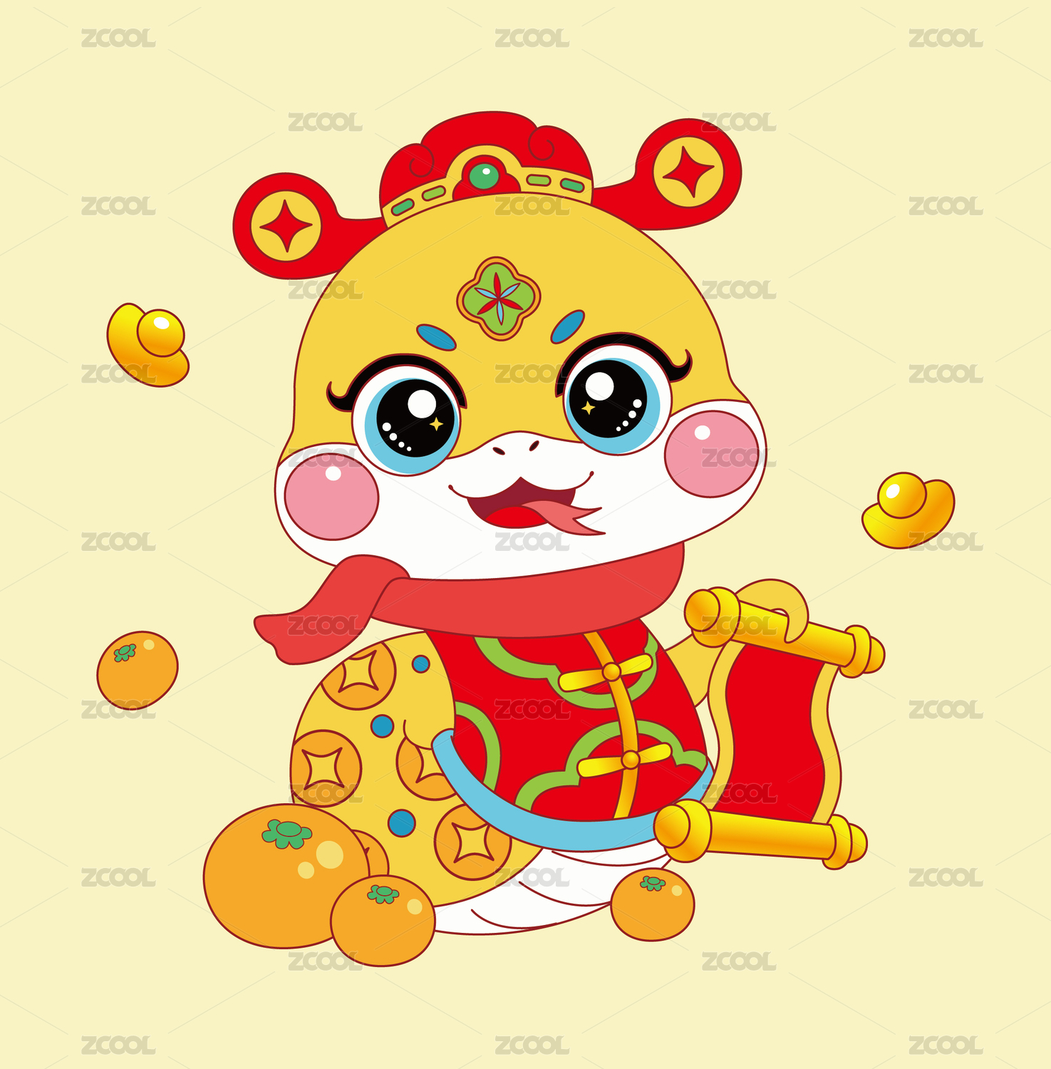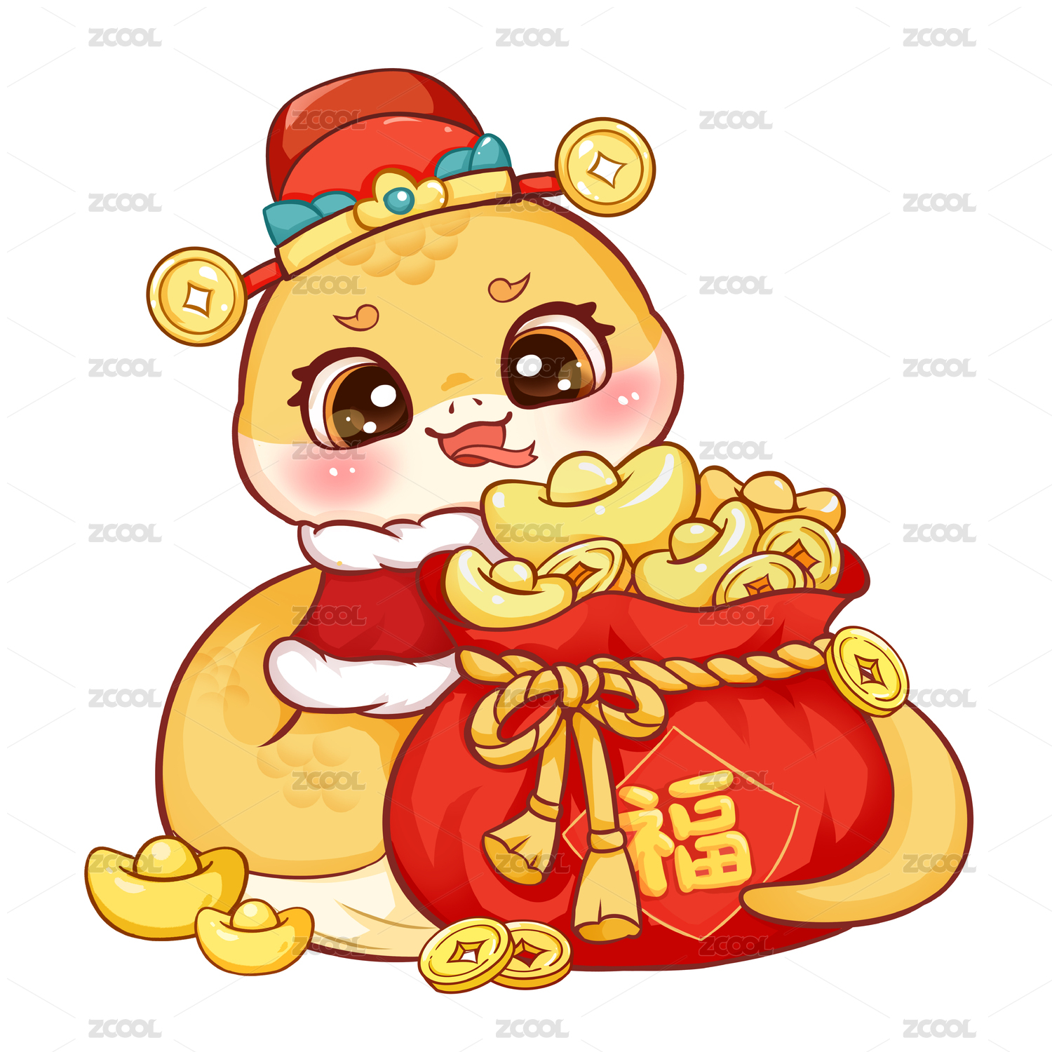 国潮春节新年可爱卡通福袋蛇金蛇插画