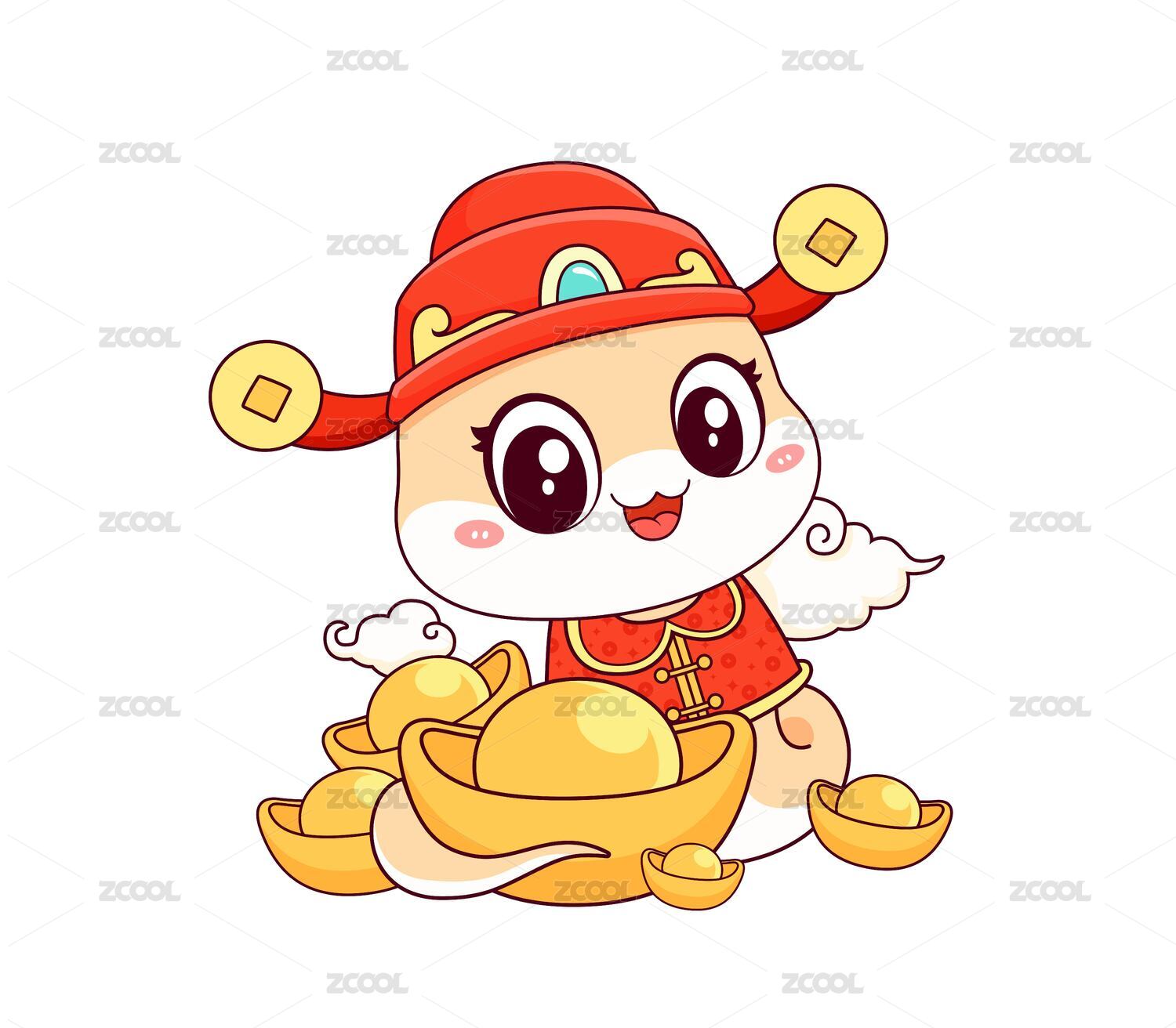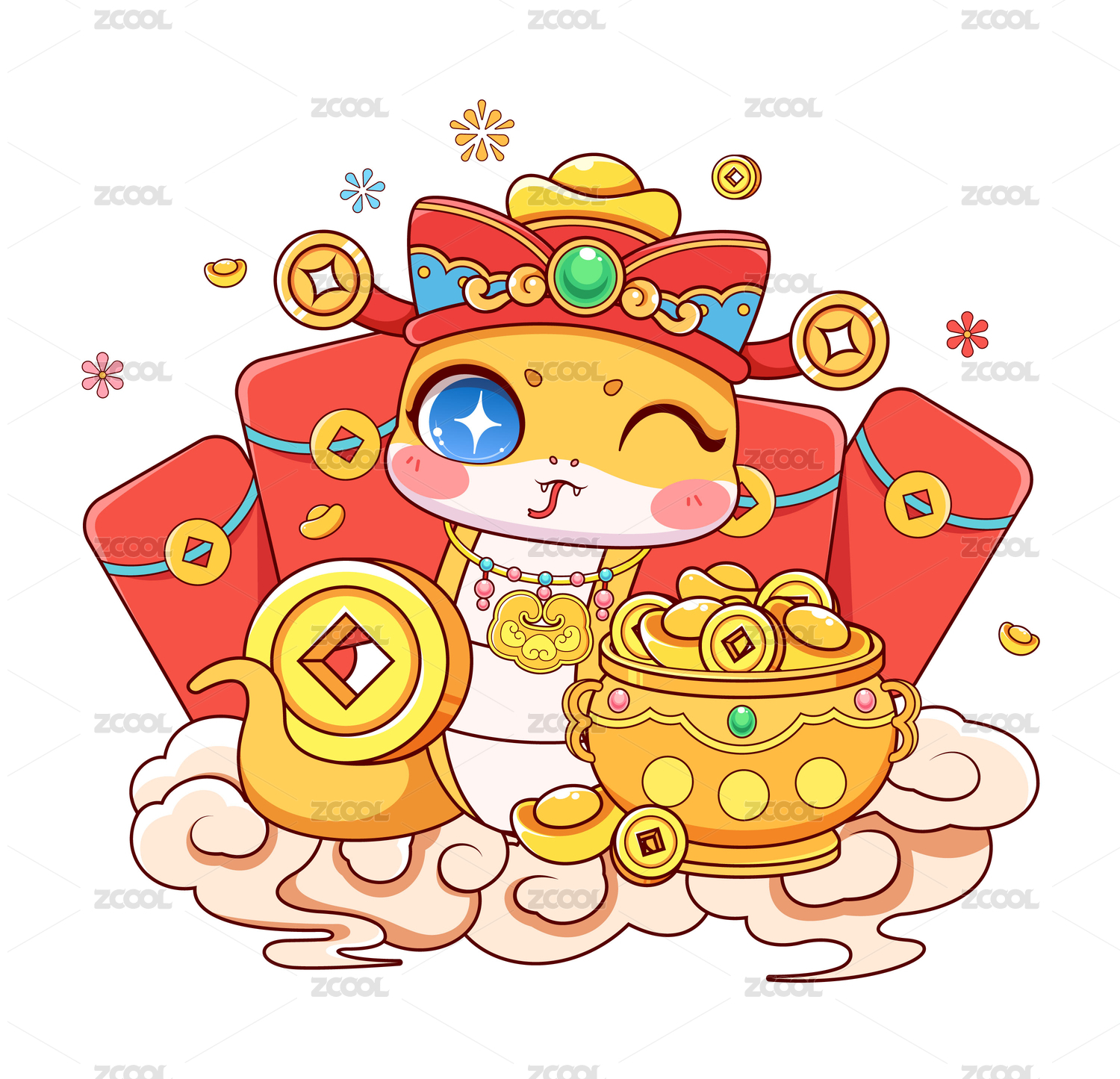 国潮春节新年可爱卡通红包蛇金蛇插画