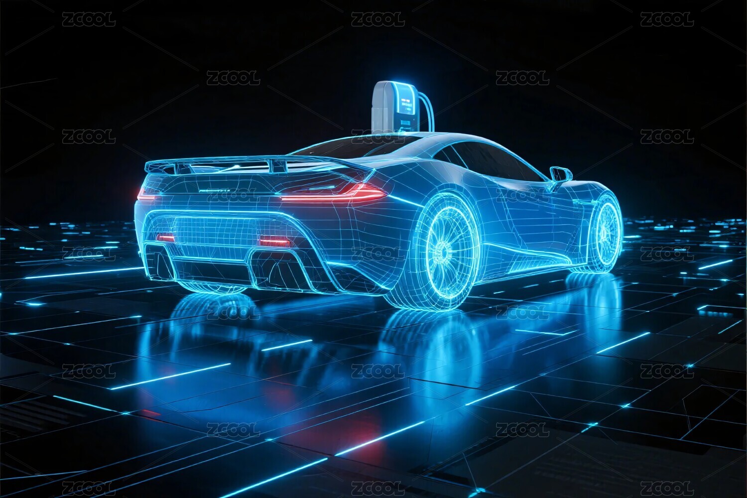 科技汽车卡车飞机轮船交通工具蓝色线条概念