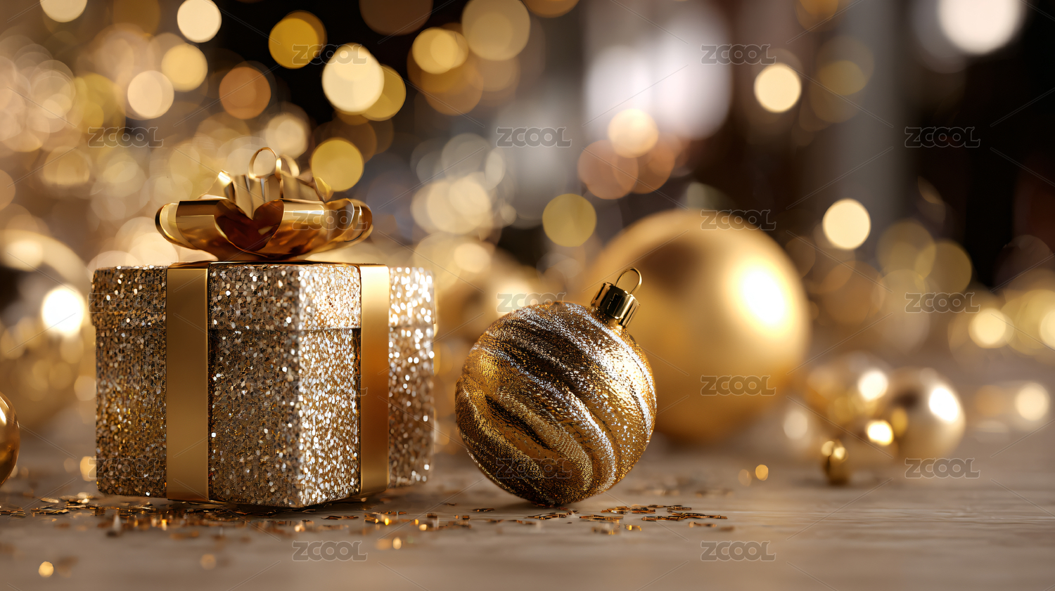 圣诞节,庆祝,礼物,盒子,特写,传统,聚会,蝴蝶结,金色,节日