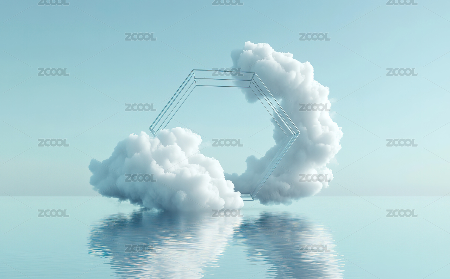 水上的云朵拱门科技背景