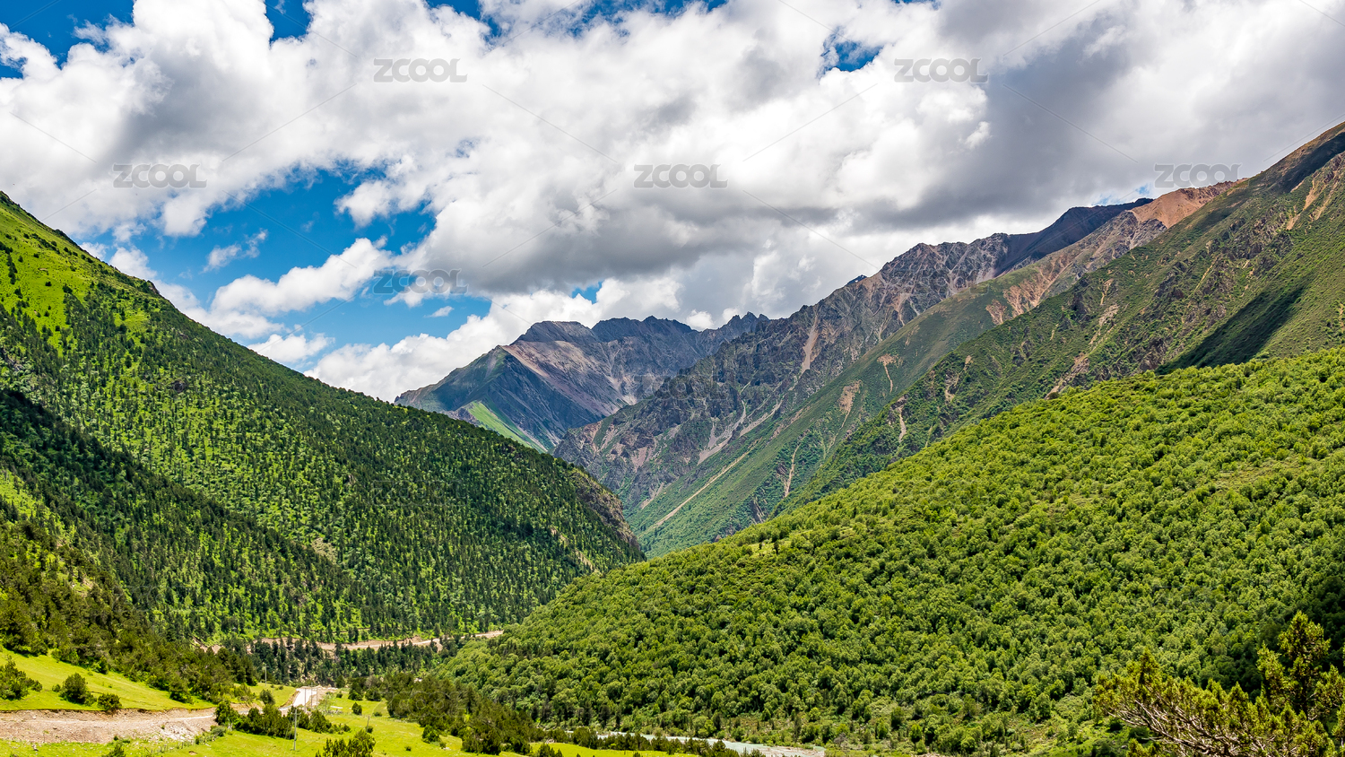 中国四川甘孜藏族自治州青山绿色自然风光