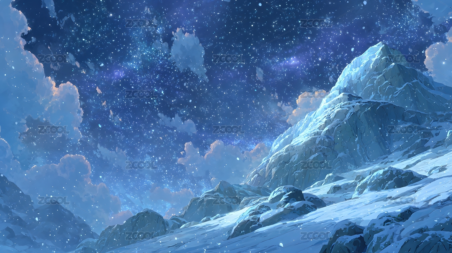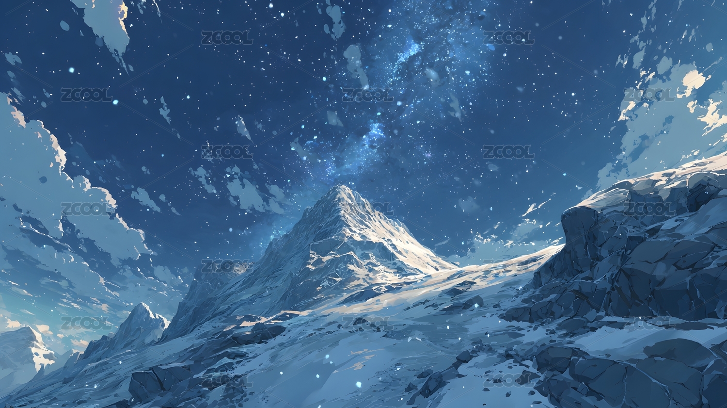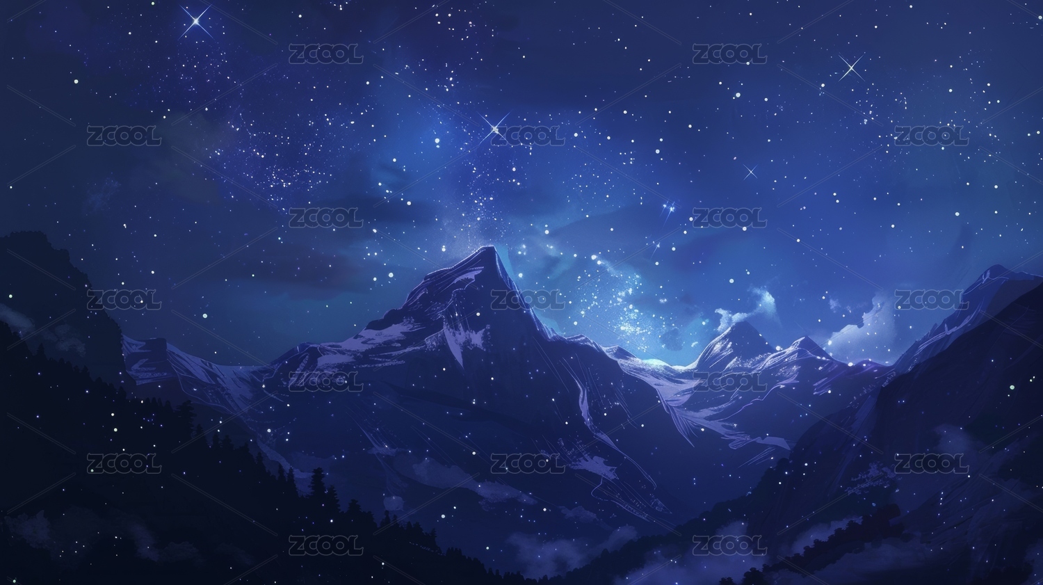 美丽的雪山星空夜空插画