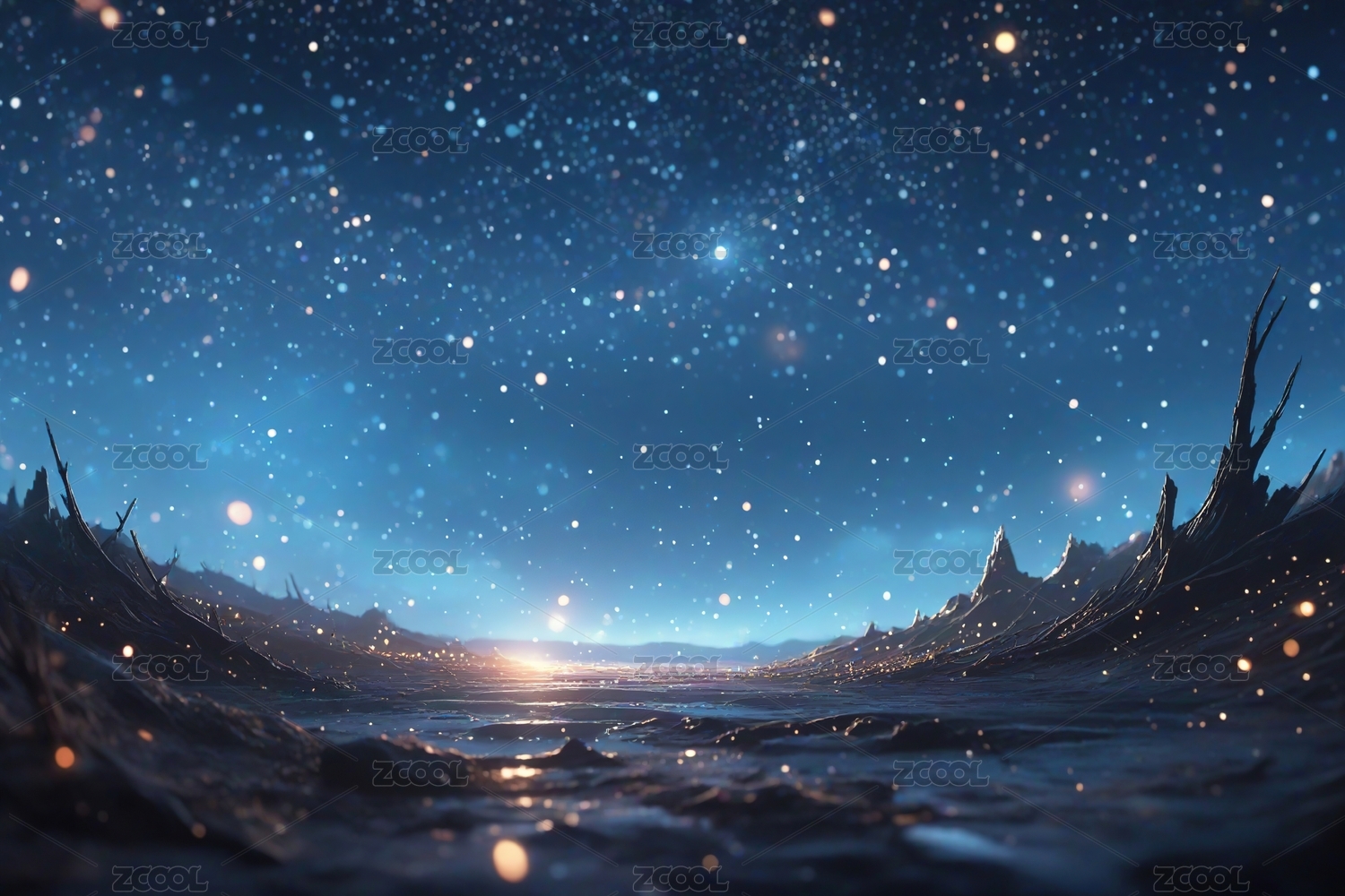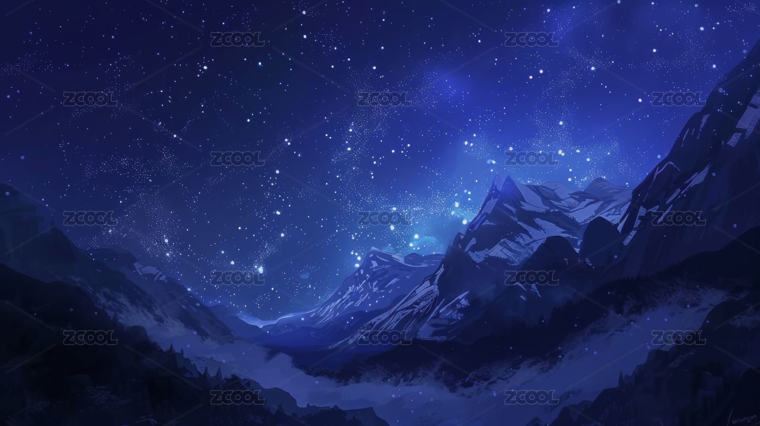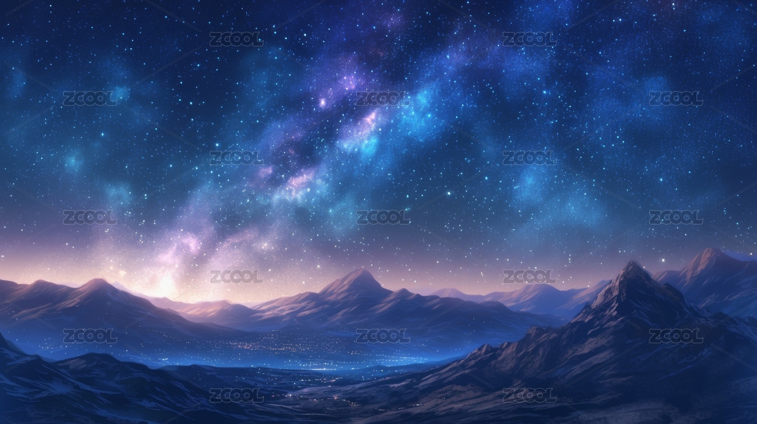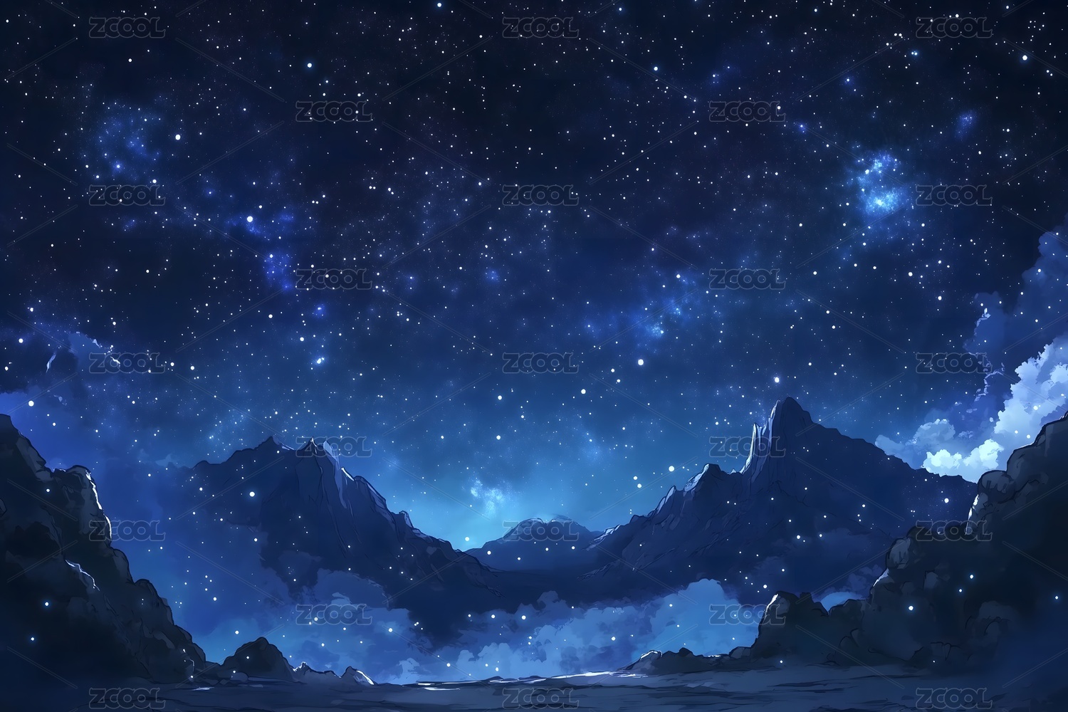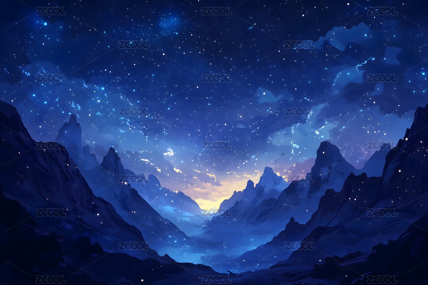 星空下蓝色山脉景象