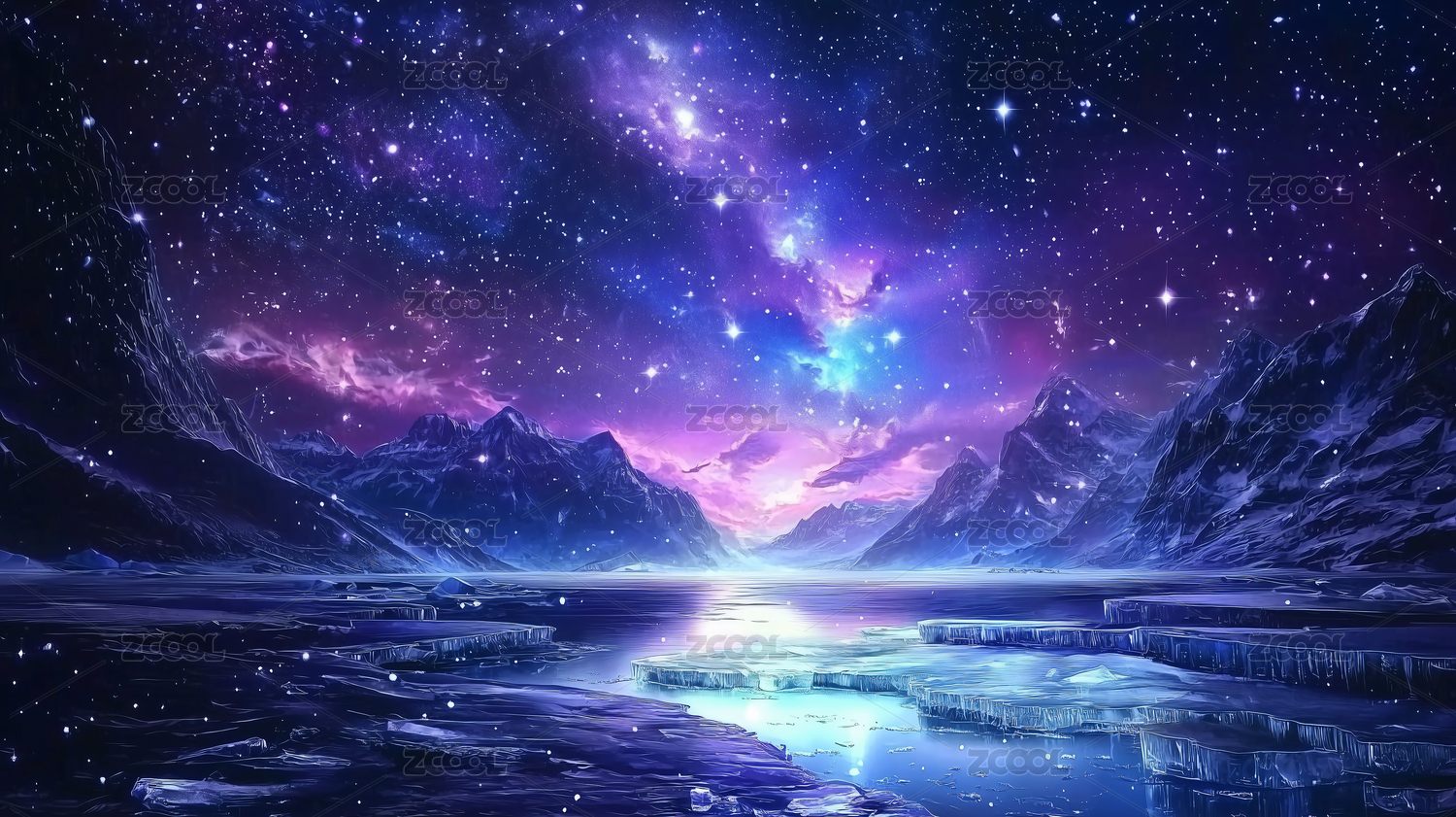 星空下的雪山湖泊主题