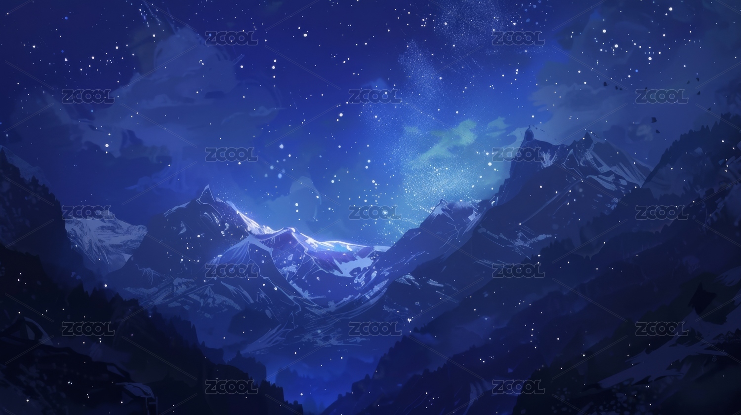 夜空中雪山的神秘蓝色面纱