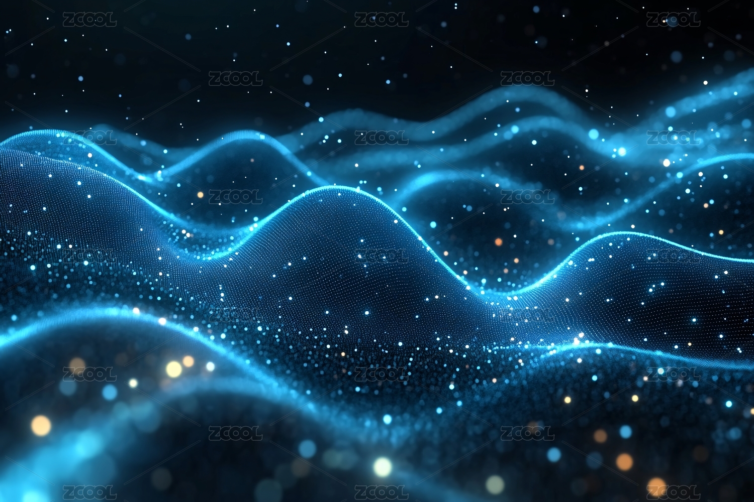 蓝色粒子波浪,闪烁光芒,梦幻背景