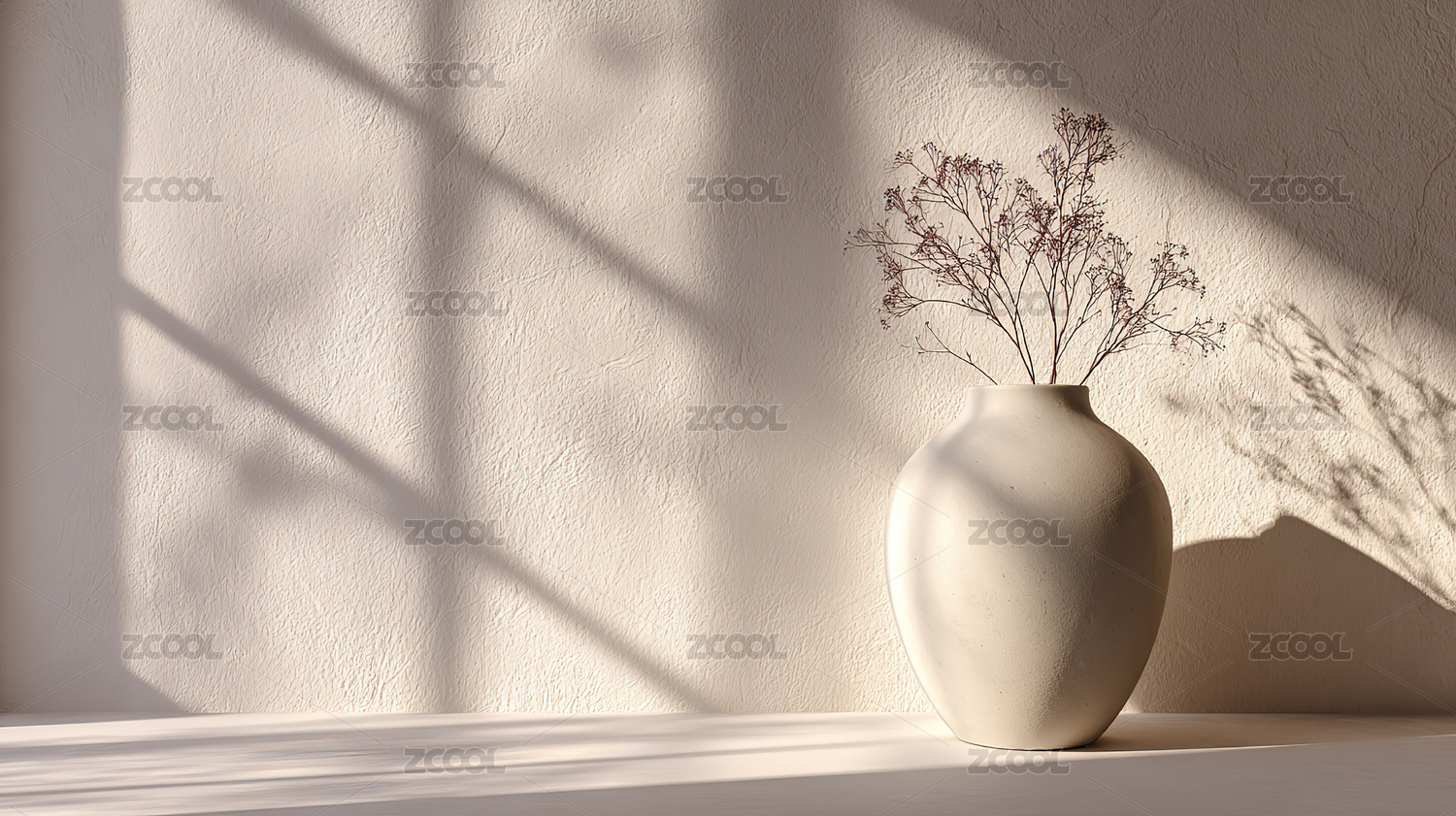 阳光透过窗洒在白色花瓶上