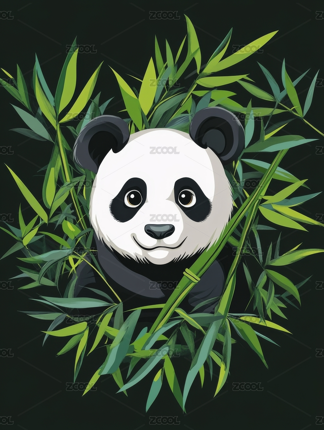 卡通风格可爱熊猫宝宝拥抱竹林快乐嬉戏