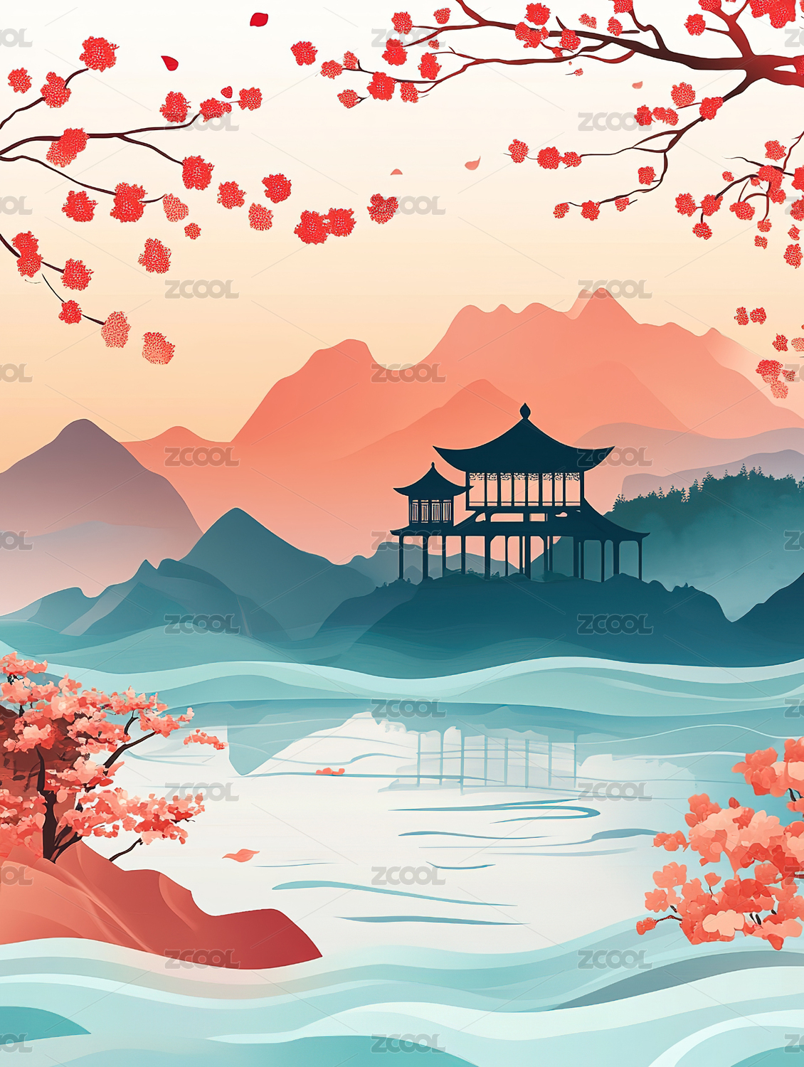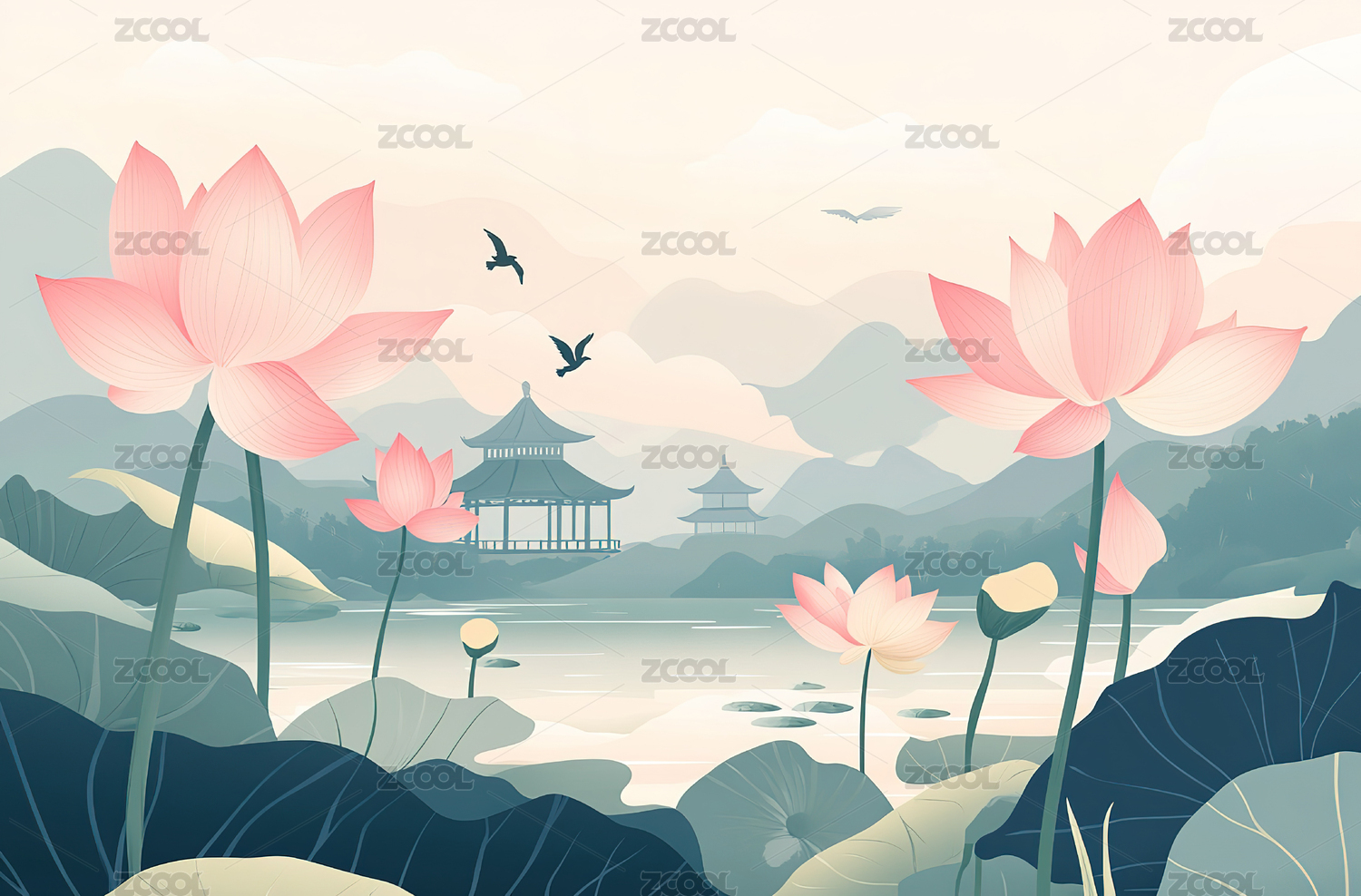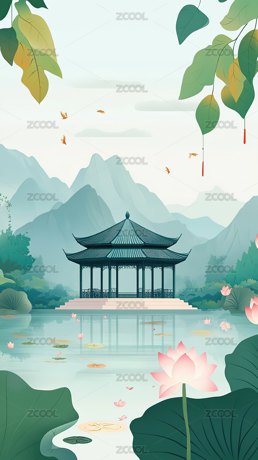 自然,插画,夏天,自然美,户外,绿色,风景,花,植物,清新