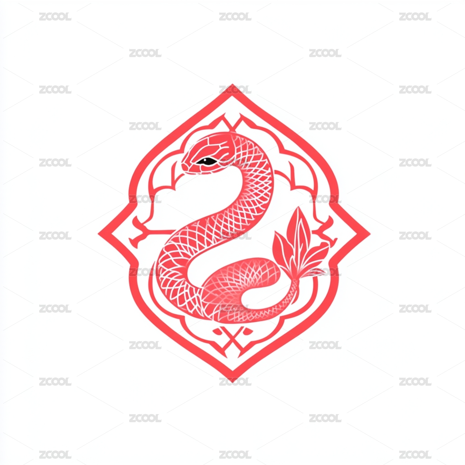蛇年主题插画艺术剪纸图案logo徽章标志