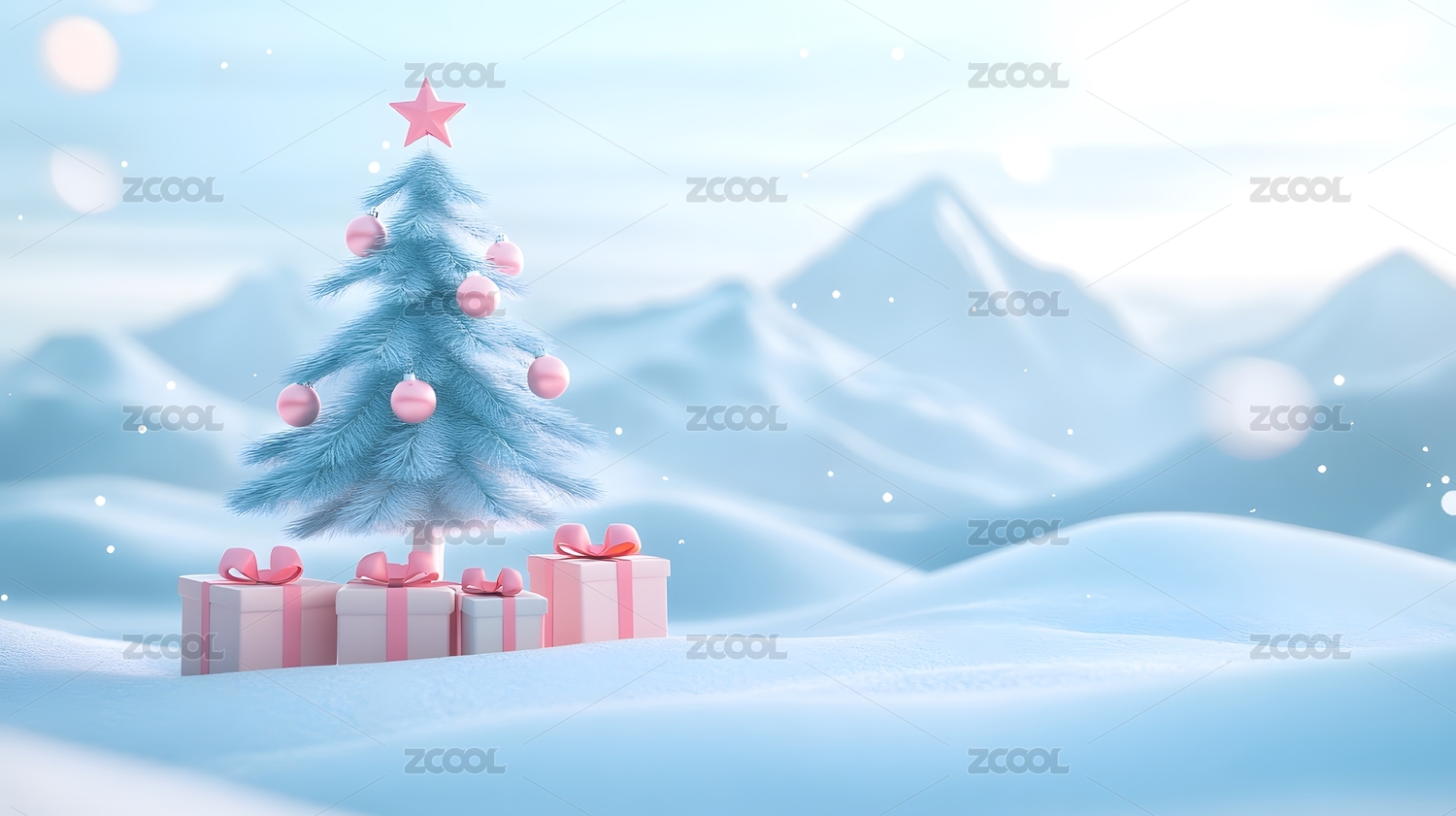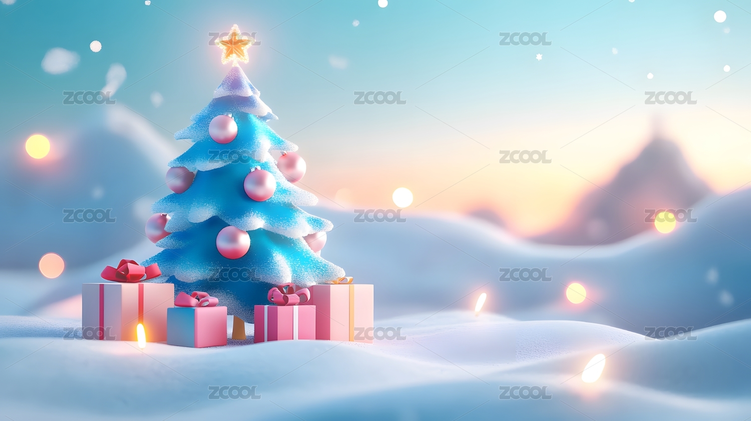 雪地里的圣诞树和礼物盒