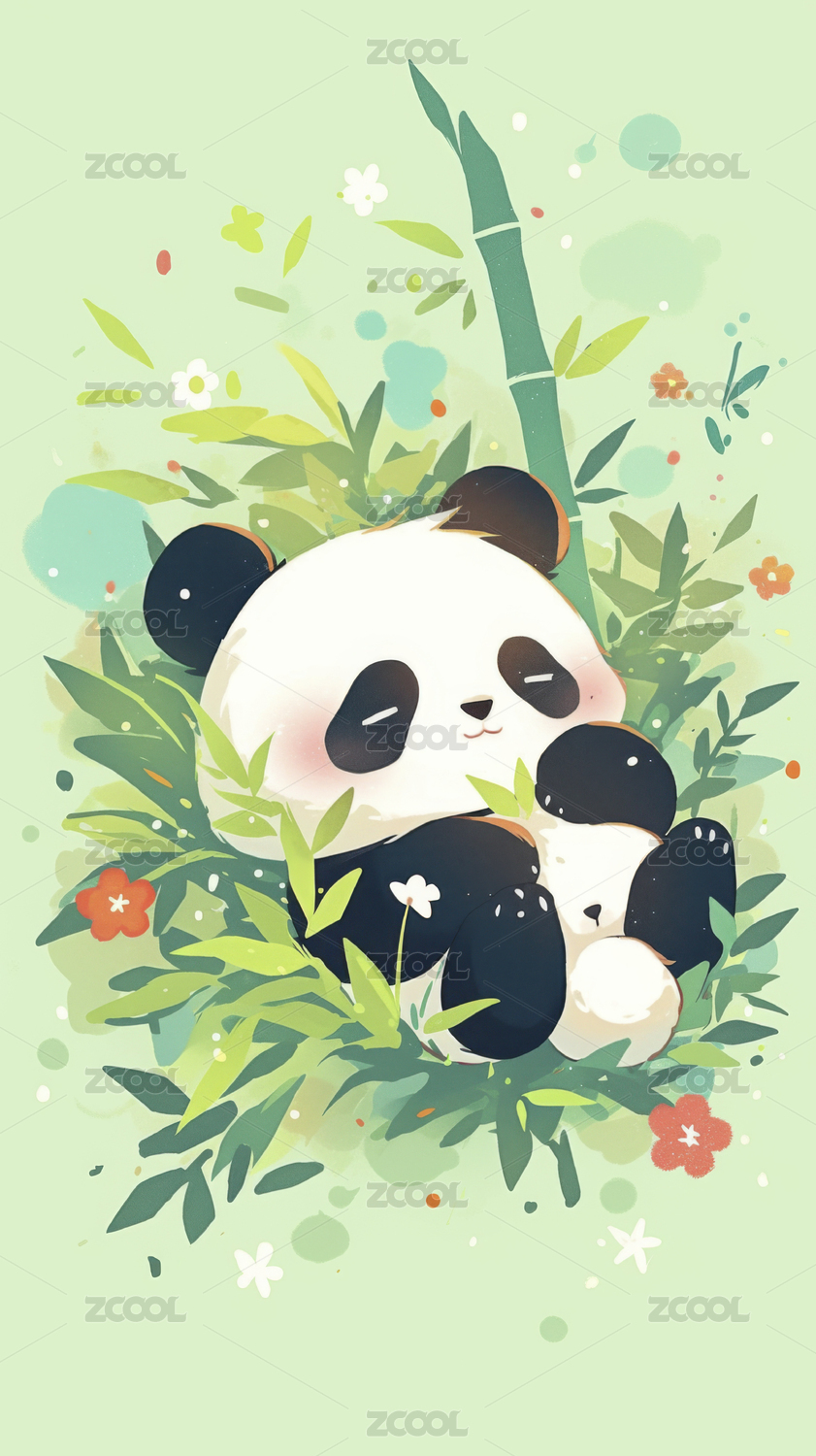 可爱卡通熊猫壁纸背景插画设计