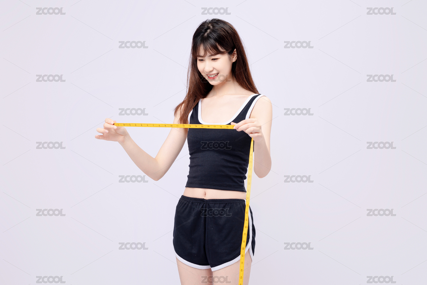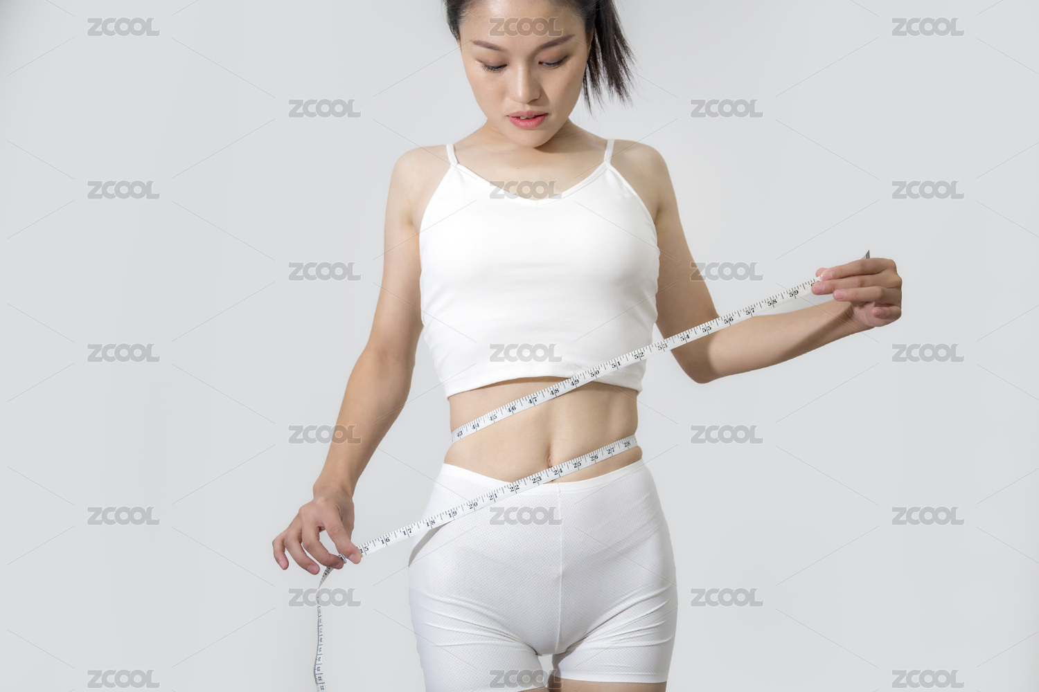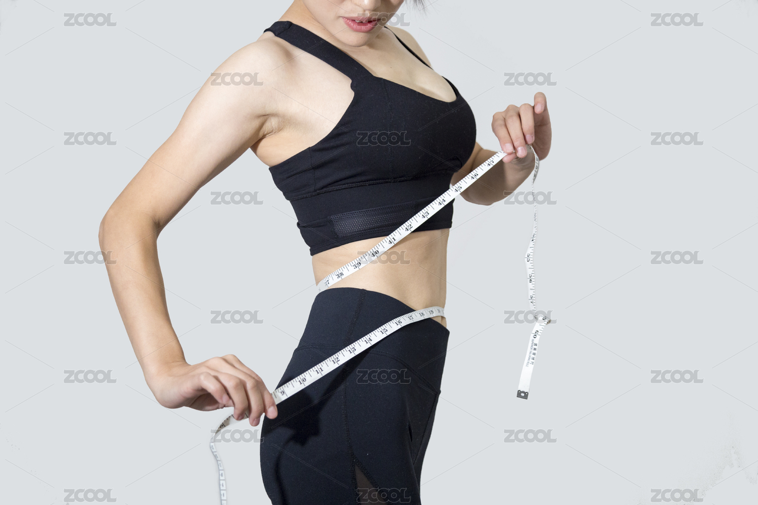 一名苗条的东方女性拿着软尺量度身材