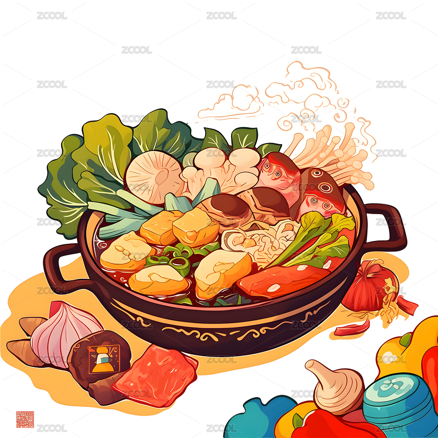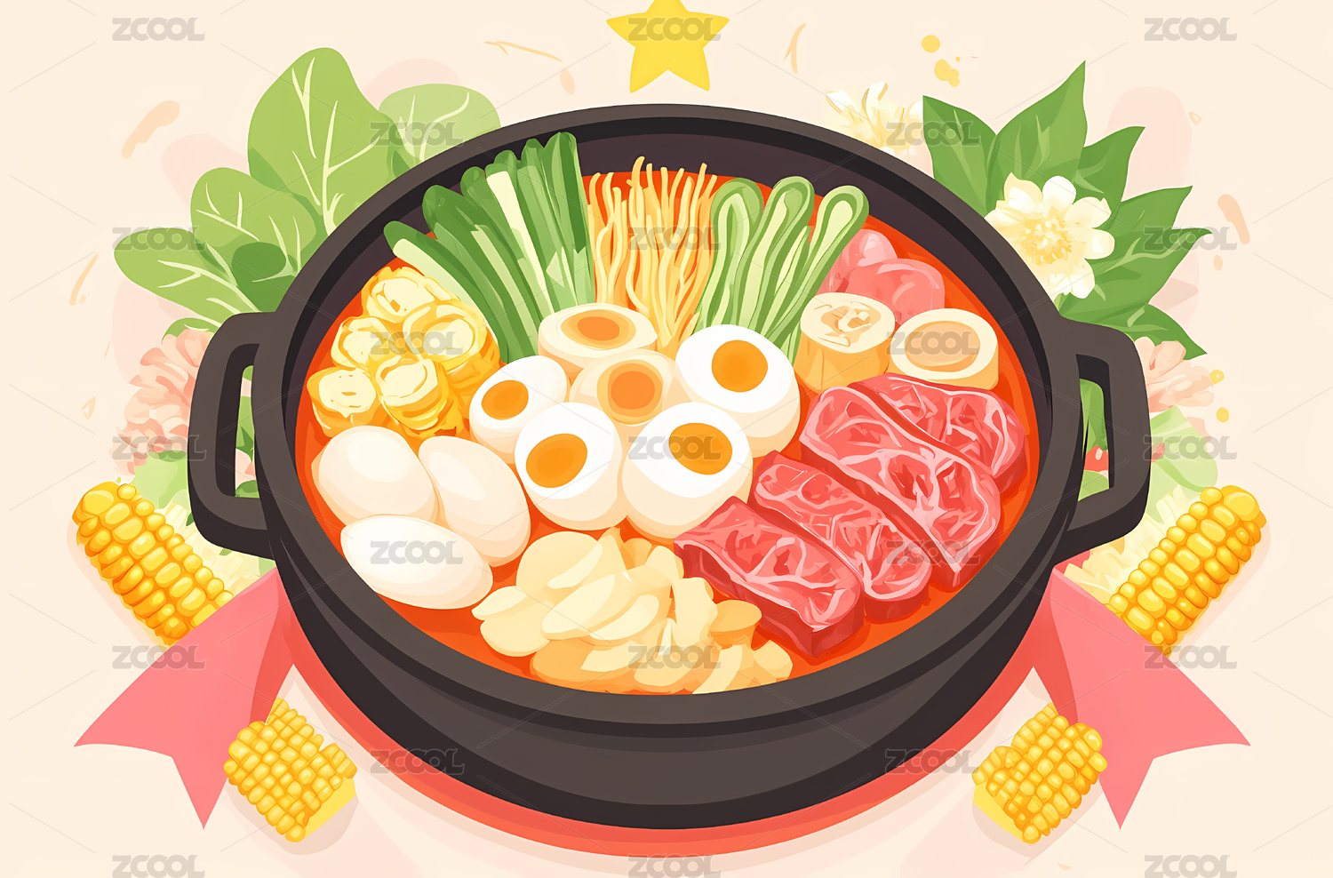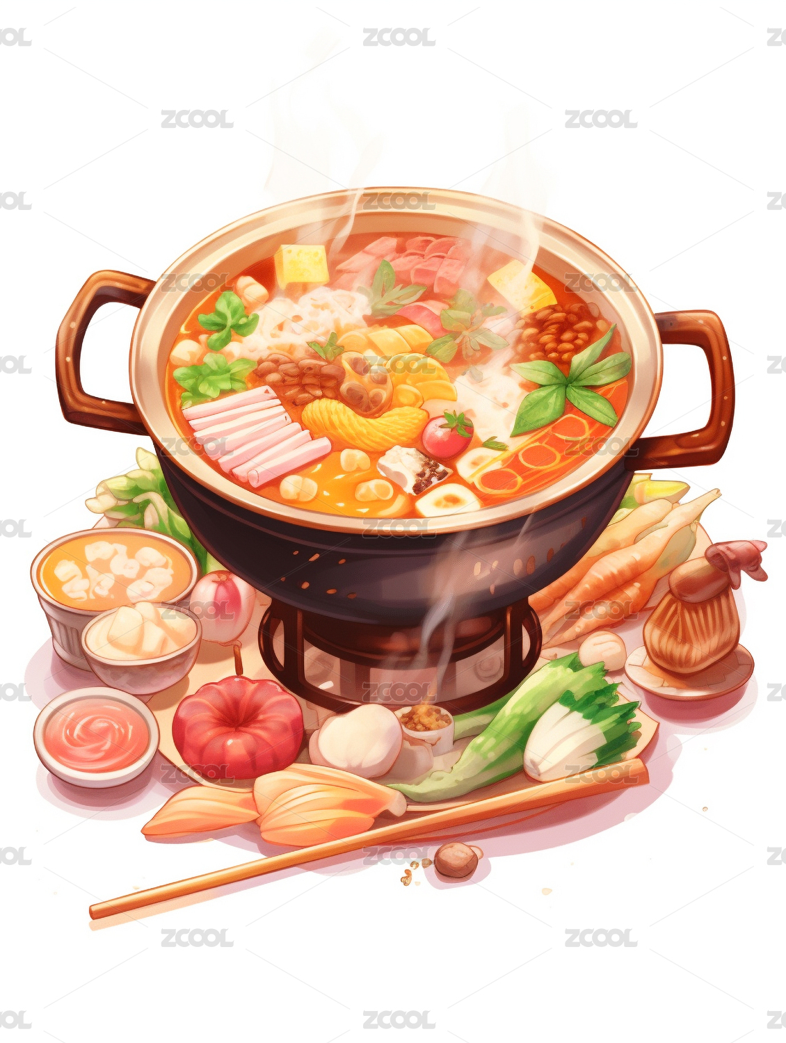 AIGCFG,国潮,美食,食物,火锅,砂锅,面条,麻辣烫,中国风,古风