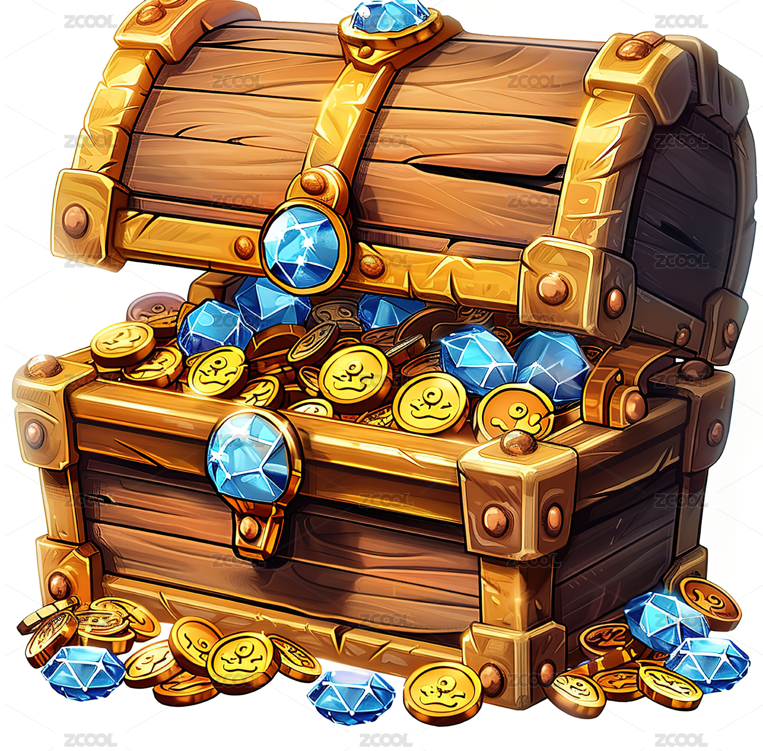 宝箱,金币,财富,UI,游戏,卡通,插图