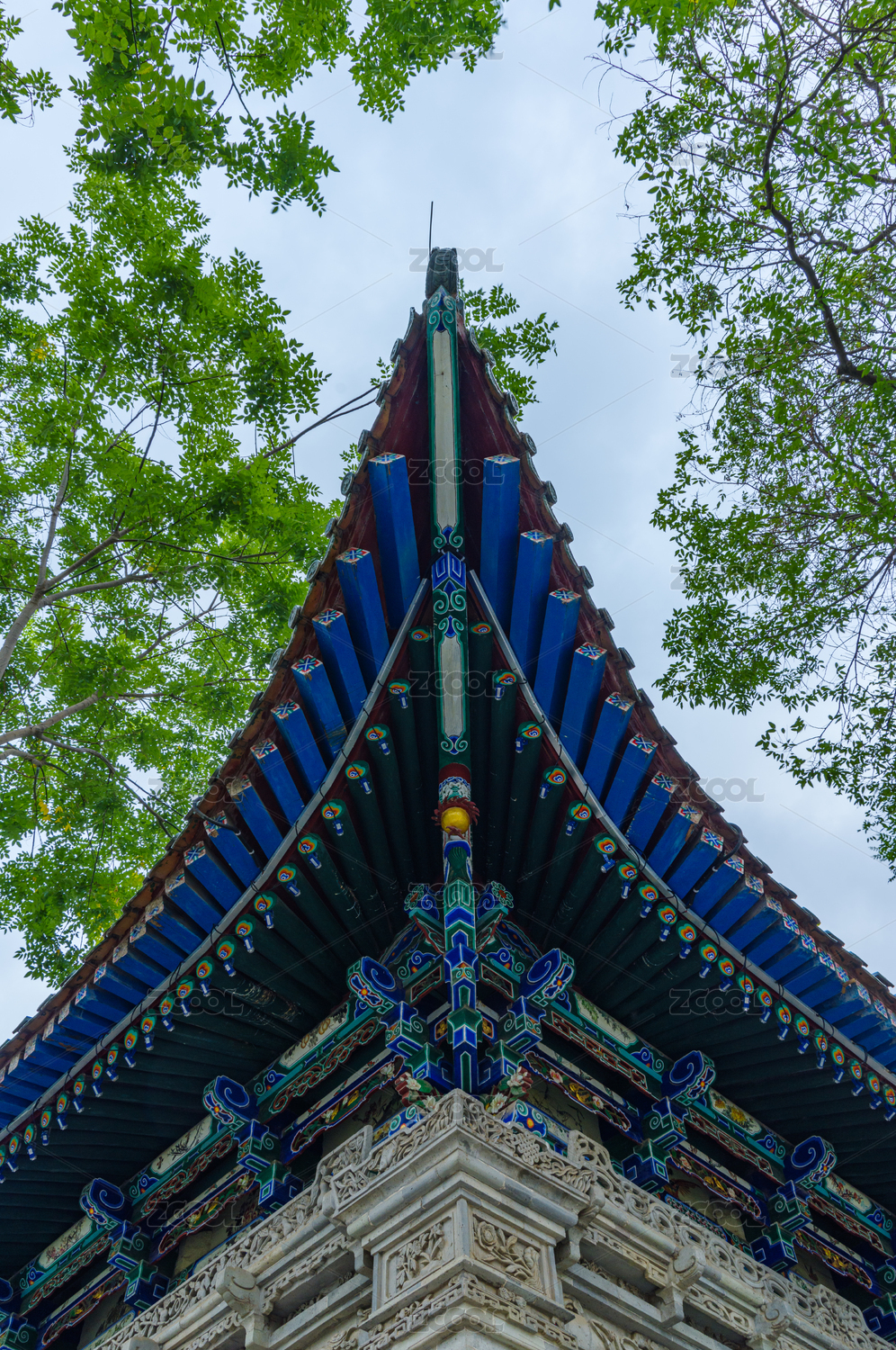 中国山东省济南市趵突泉景区内古建筑彩绘斗角