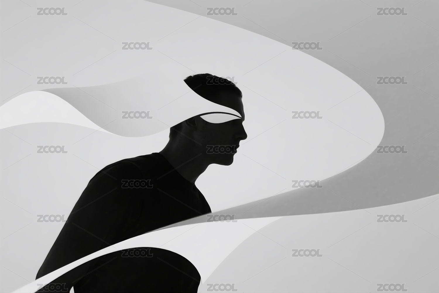 轮廓,人的,黑色,面对,黑与白,头,单色,吉他,剪影,侧面